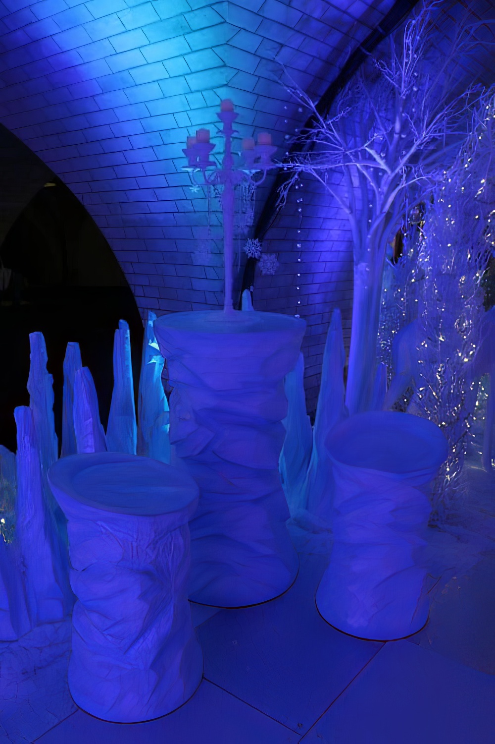 Ice Effect Poseur Table for hire. We’re delighted to be able to offer this stunning hand crafted ice effect poseur table for hire; part of our new ย Ice ย styled collection. This poseur table would look fantastic in any Frozen, Winter Wonderland or Christmas themed event or party. And take a look below at the other items available from this range; grouped together they look fantastic and help to create a wonderful icy, frozen setting.