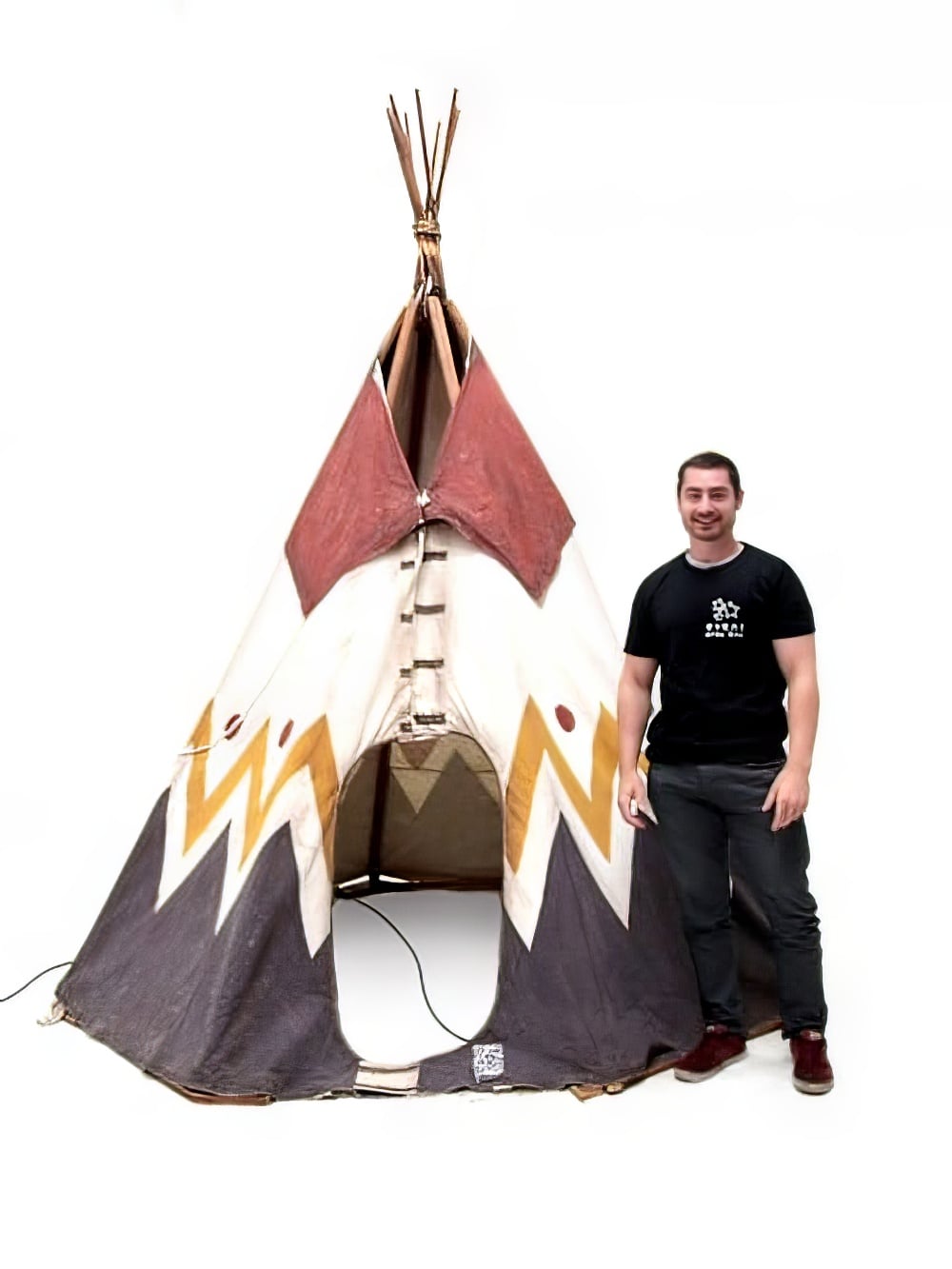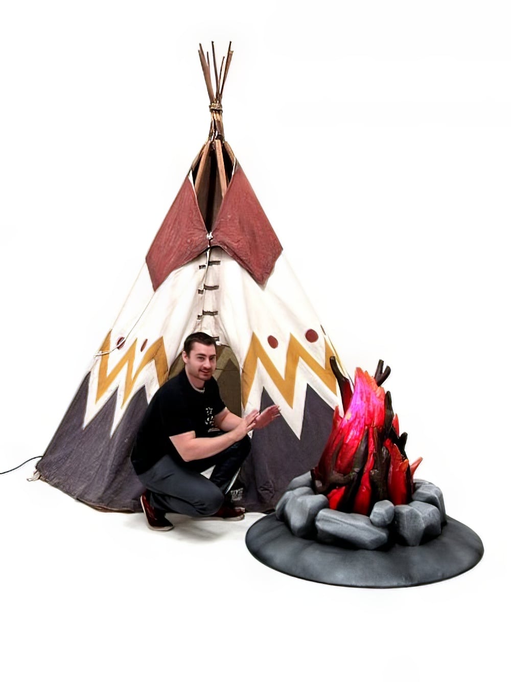 Native American Tipi Prop to hire. Our authentic Tipi is as real as it gets! It is fully 3D with lots of space inside to entertain your guests and consists of a wooden frame wrapped in a tough tarpaulin with Red Indian decals.