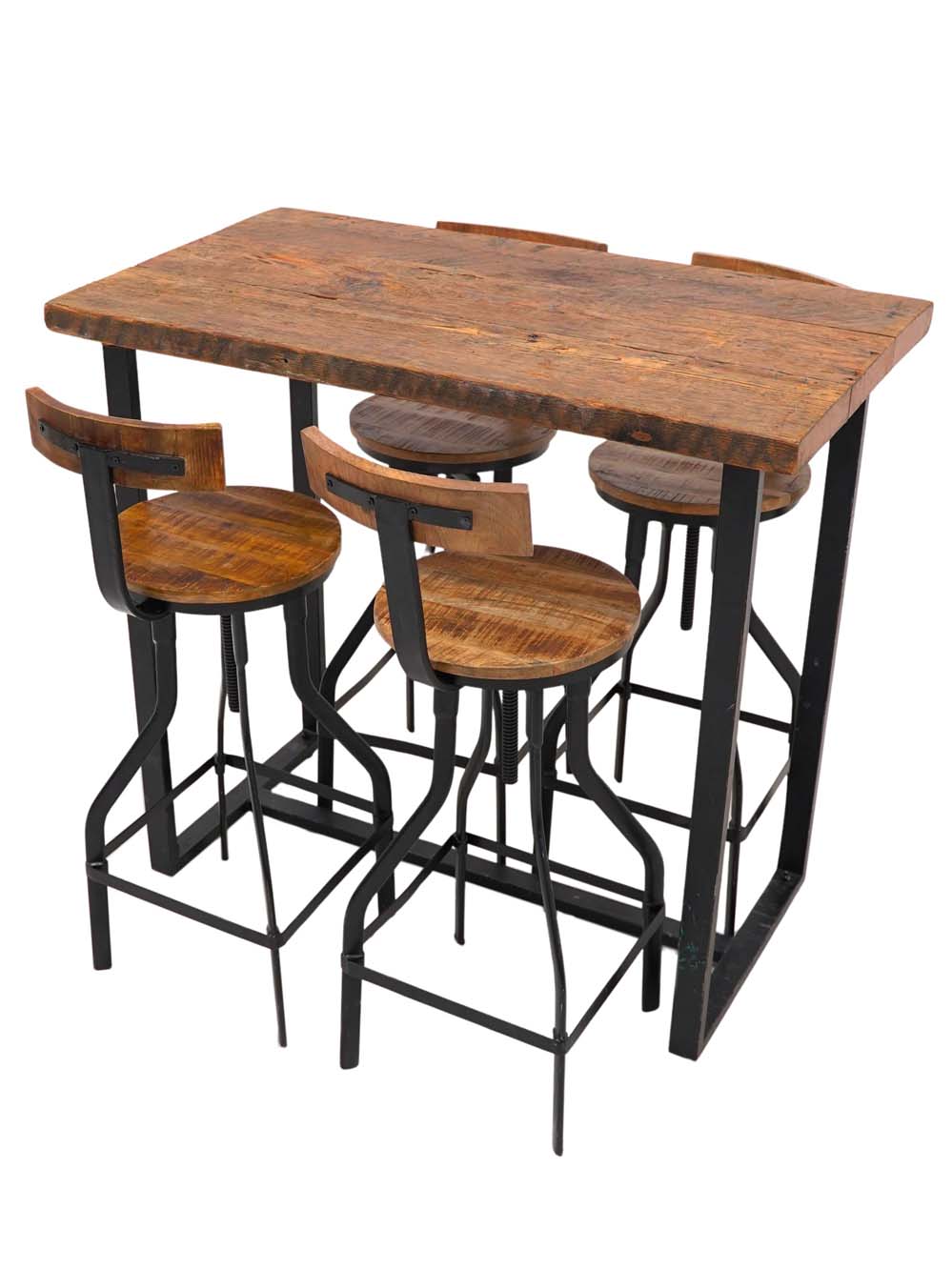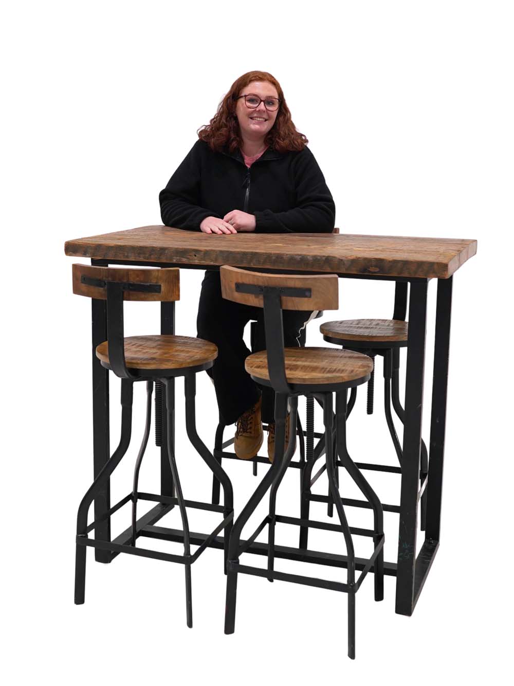 Industrial Bar Poseur Set for hire Combining our 2 most popular furniture pieces into one hand package! Featuring 1 industrial high table and 4 height-adjustable industrial stools.