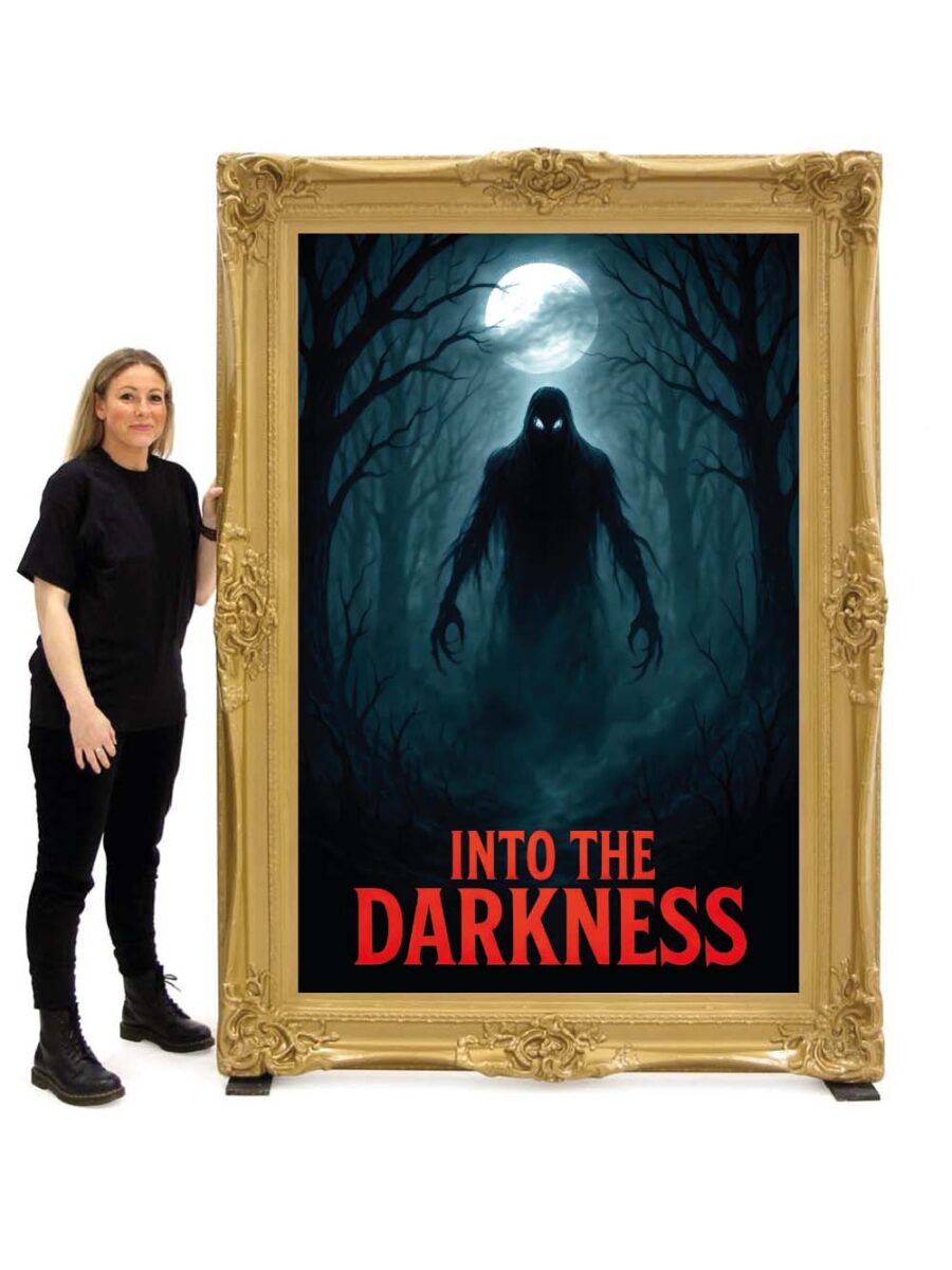 Into the Darkness Halloween Print in Gold Frame. Great theming for Halloween Themed events. Check out the full range of Halloween theme prints in giant frames.