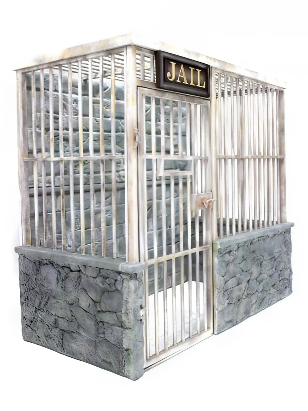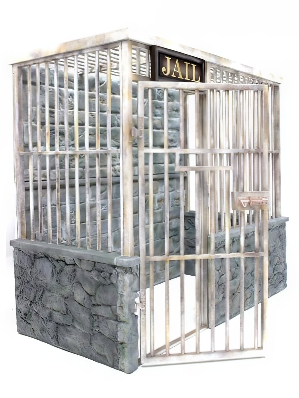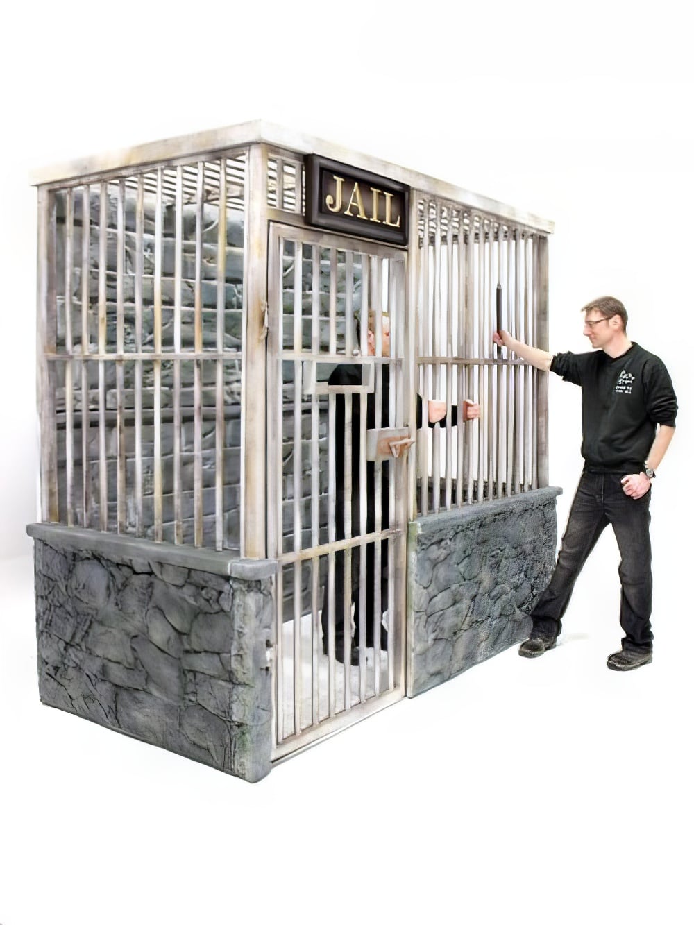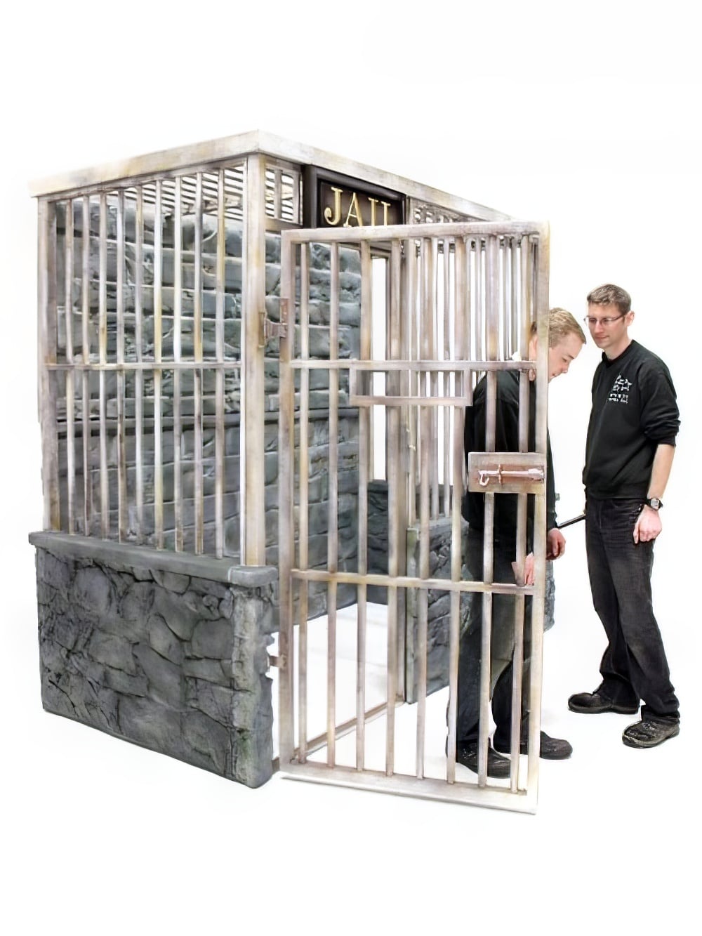Jailhouse to hire. Take a look at our ultra realistic Jailhouse prop which features a replica stone back wall and bars with a rustic paint effect. The prop comes complete with a 3D ‘JAIL’ sign. This is a great prop for teambuilding events, re-creating the Wild West, or whenever you need to lock away those naughty guests.