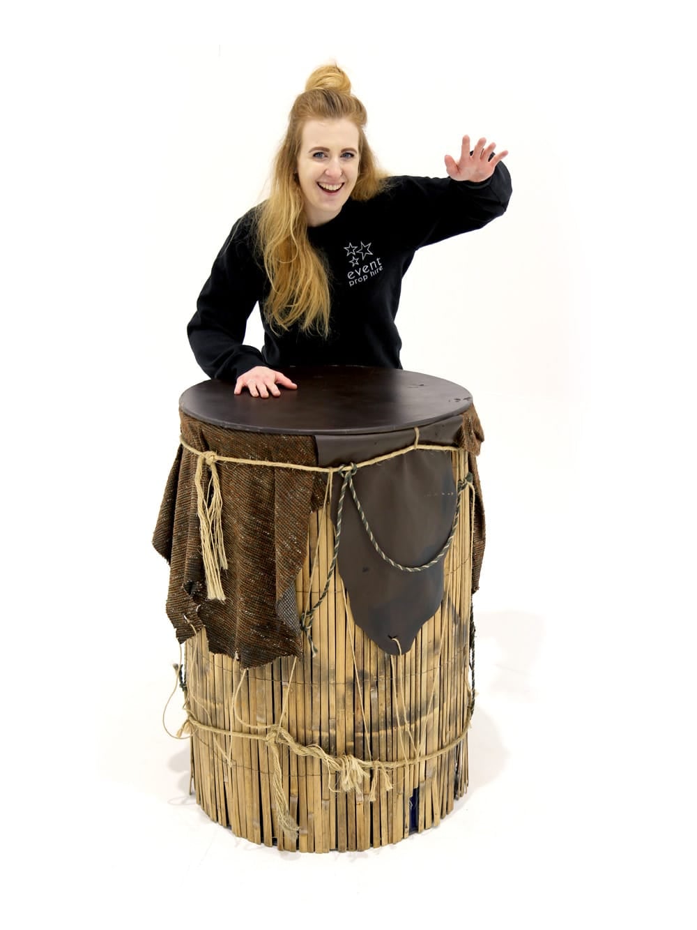 Jungle Drum for hire. This Jungle Drum is a ย fun and creative ย prop to add to your Jungle themed event or party. Covered in bamboo and fake bones….what more could you want? Covered in bamboo and fake bones…. what more could you want?
