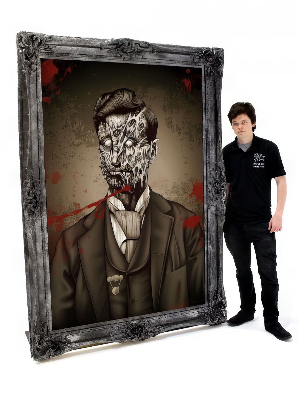 Hanging Creepy Vintage looking Portrait of a Zombie Gentleman.