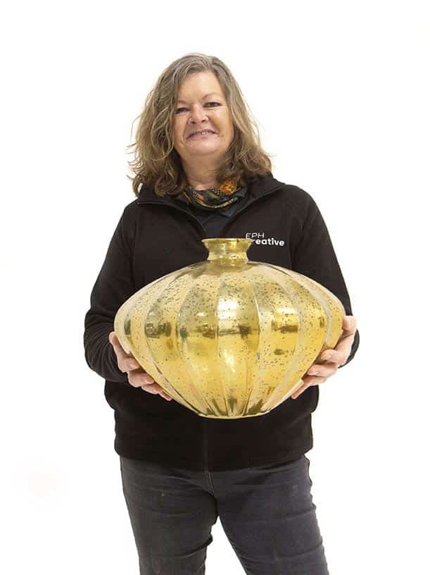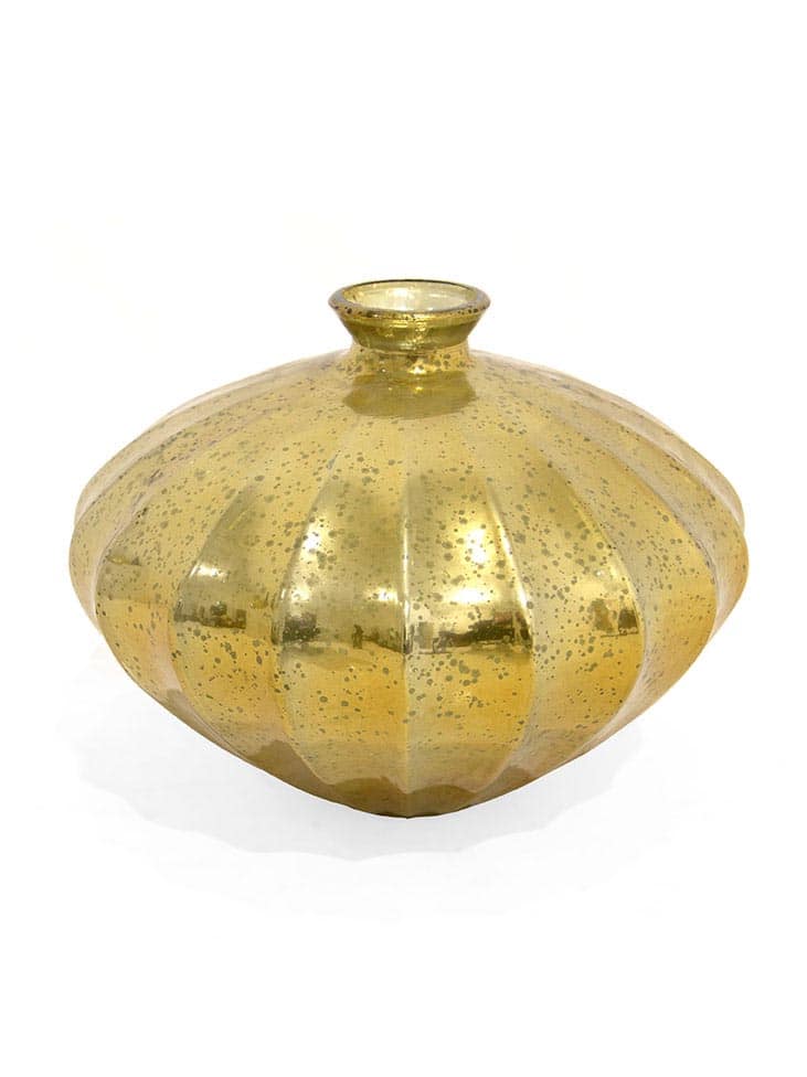 Gold Vase for hire. This gold vase will fit into lots of different themes and looks great as a display piece. Why not take a look at our other size of gold vase and use them with some of our feathers to create a luxurious display.
