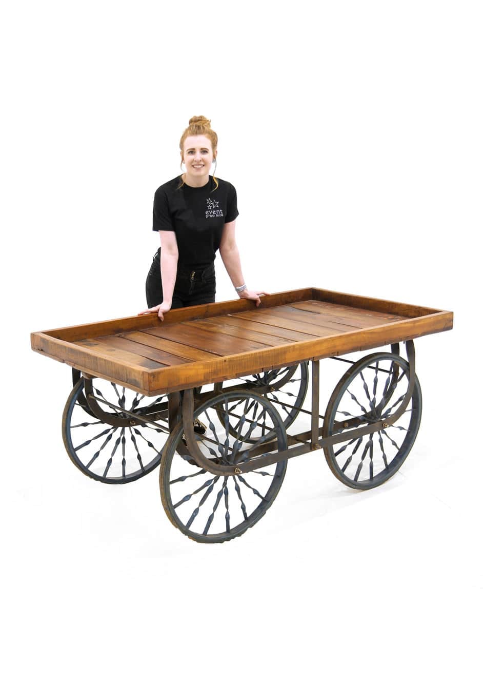 Large Rustic Cart to hire. This beautiful Large Rustic Cart is a fabulous addition to any market themed event. This industrial looking Rustic Cart is great for displaying products and setting a traditional rustic market scene.