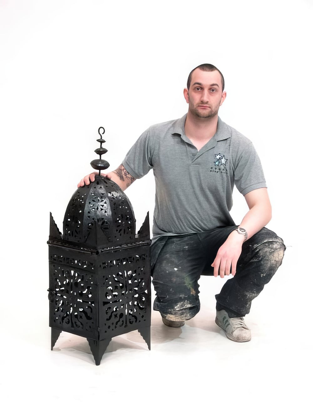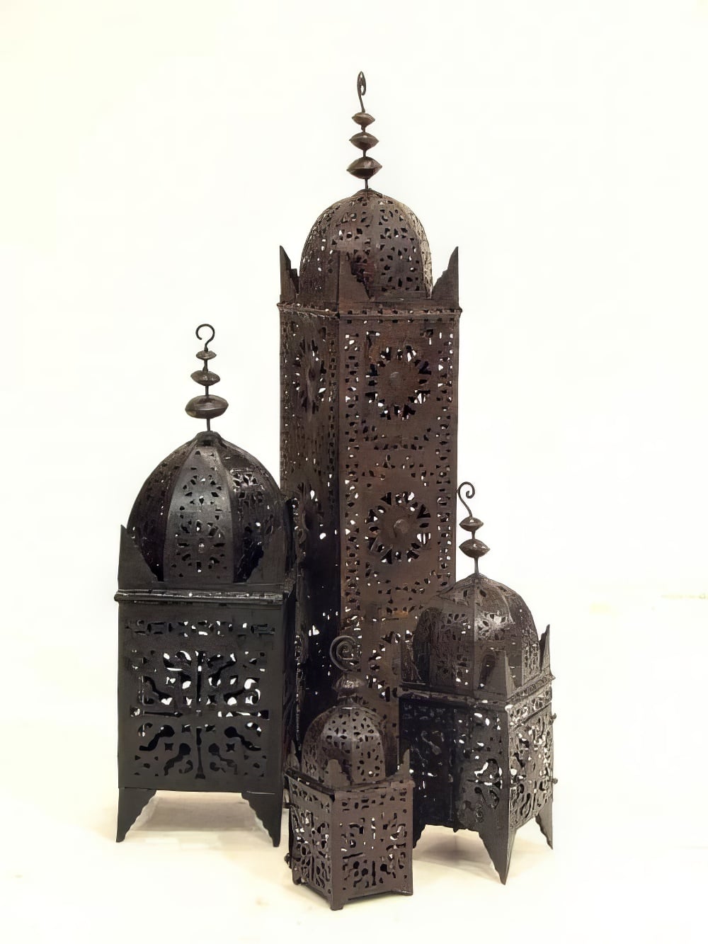 Large Lantern prop to hire. Crafted from ornate tin metal work, our lanterns are capable of housing lit candles, or if ย  you prefer, our replica battery operated candles which are available as an optional extra and must be requested if you require. Please take a look at our full range of metal work lanterns which are perfect for theming and decor of any moroccan or arabian nights themed event party night!