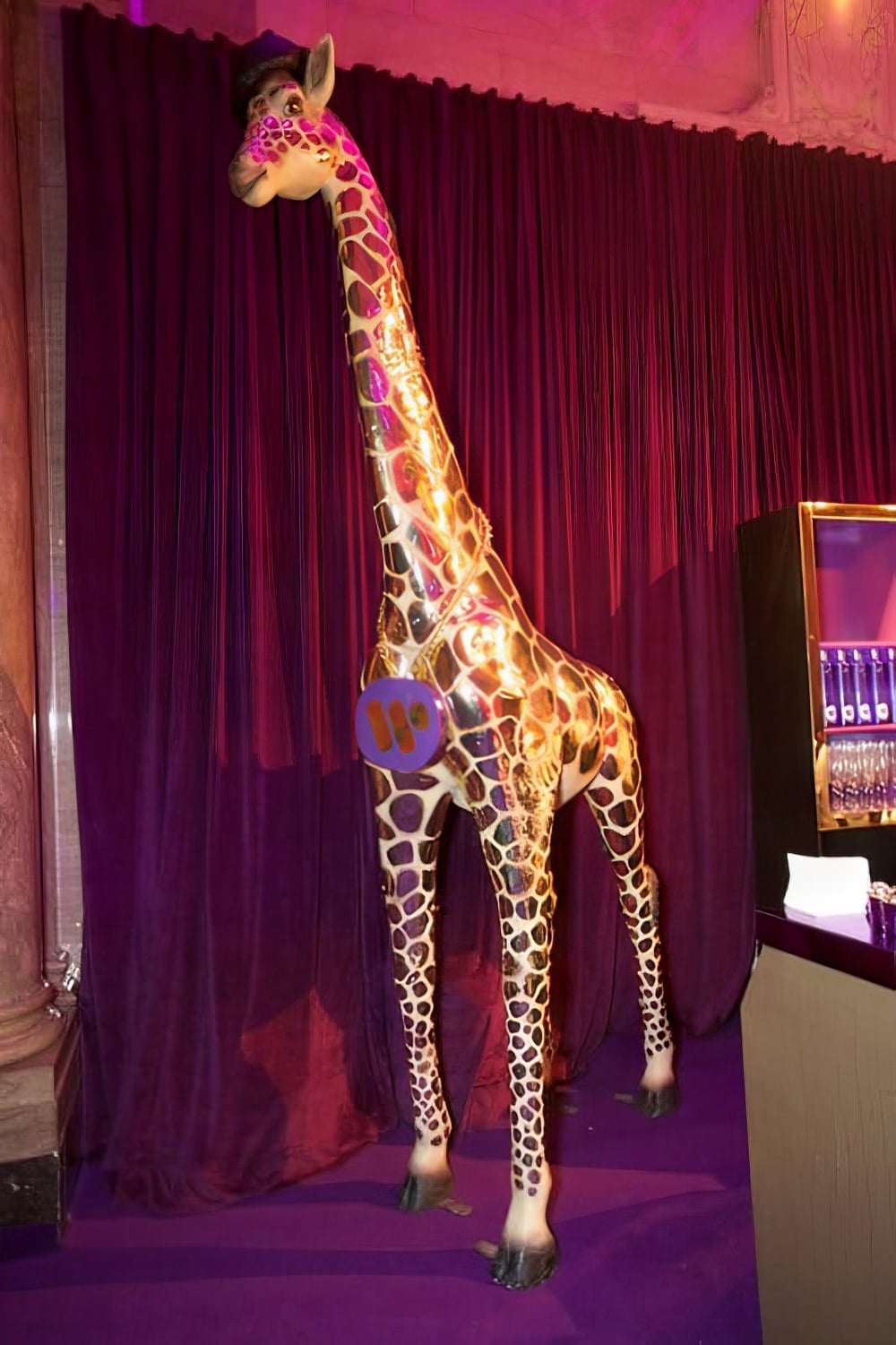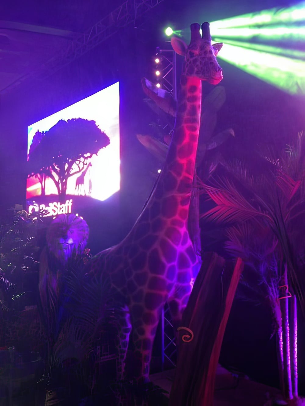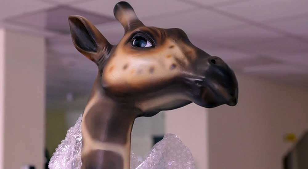 Life-size ย Giraffe prop to hire. This Stunning life-size ย adult Giraffe is freestanding and suitable for any zoo, circus or Africa themed party event. Please take a look at all our other available animal props to hire within our animal themed prop section. Please note: This prop requires at least two strong individuals to manoeuvre.