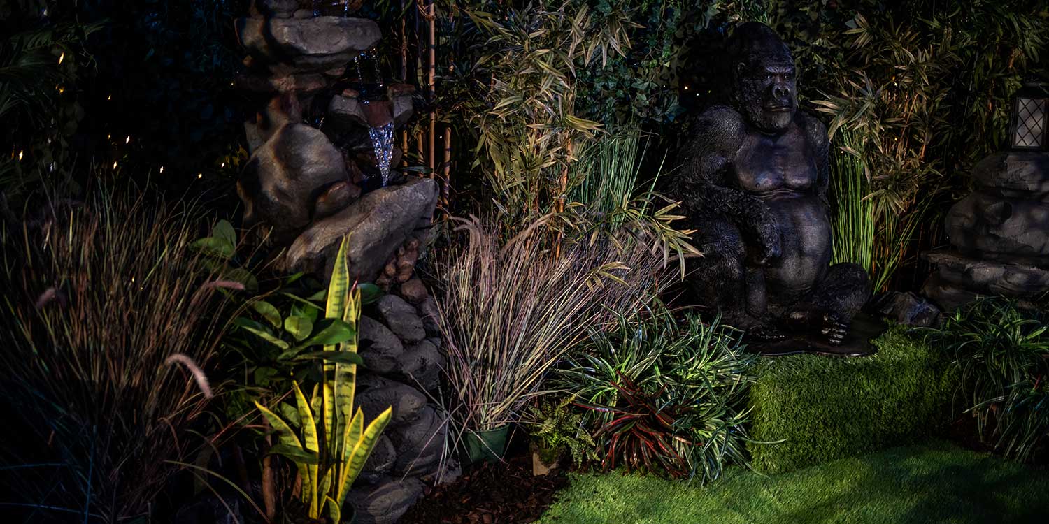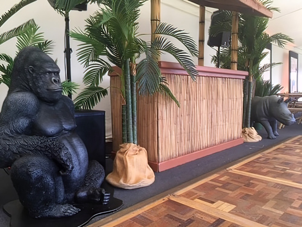 Life-size Sitting Gorilla animal prop to hire. Our gorilla prop is life-size and freestanding and would be a welcome addition to any Jungle or Animal themed event party.