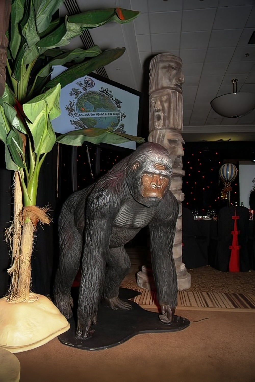 Our gorilla prop is life-size and freestanding and would be a welcome addition to any jungle or animal themed event party.