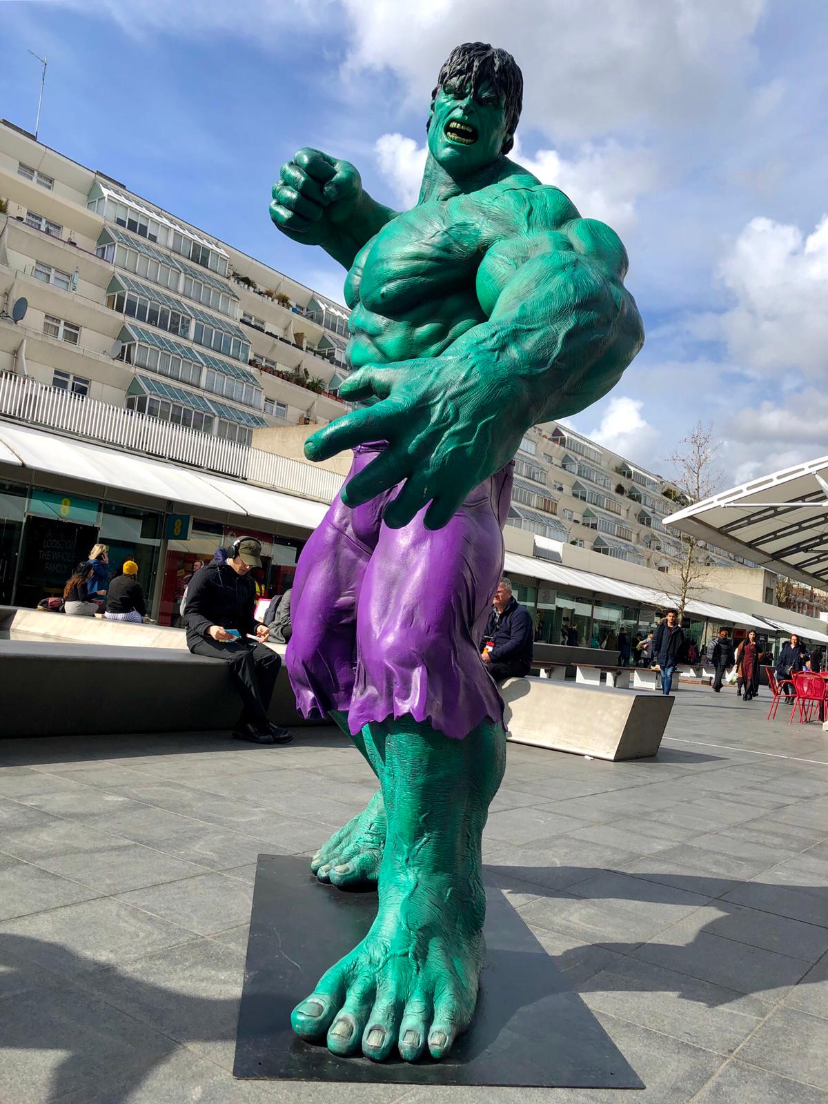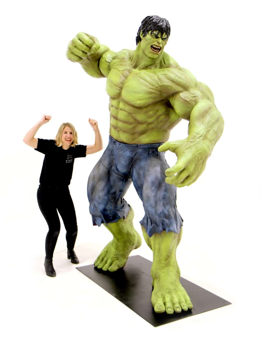 Quick… hire our Incredible lifesize Hulk Model before he calms down!! One day our warehouse was exposed to some dangerous gamma radiation and look what happened to our MD Matt! Just like Bruce Banner he turned green and ripped though his shirt; so now when deliveries get too stressful Matt turns into a rampaging monster! Seriously… this is a truly impressive model and at 8ft high he will certainly make a BIG impact at your event. And don’t let his size put you off; our Hulk Model comes apart for easy installation.