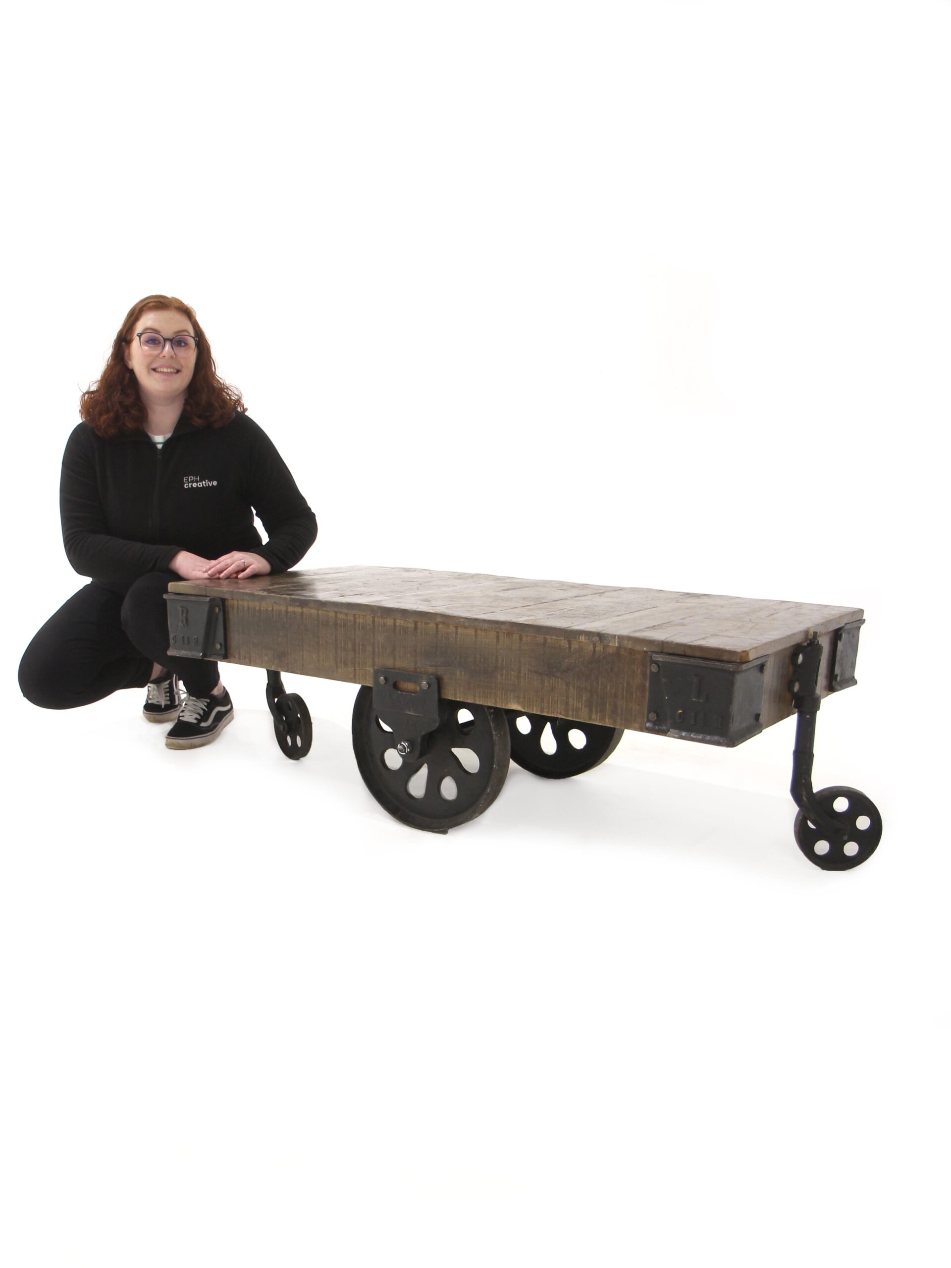 Low Cart Table for hire! These industrial looking low tables are completely multi-functional. Use them as a coffee table, as a display area or simply to help set the scene at your party or event. They would look great in many themes, from Fairground to Festival, or from Apres Ski to Park.