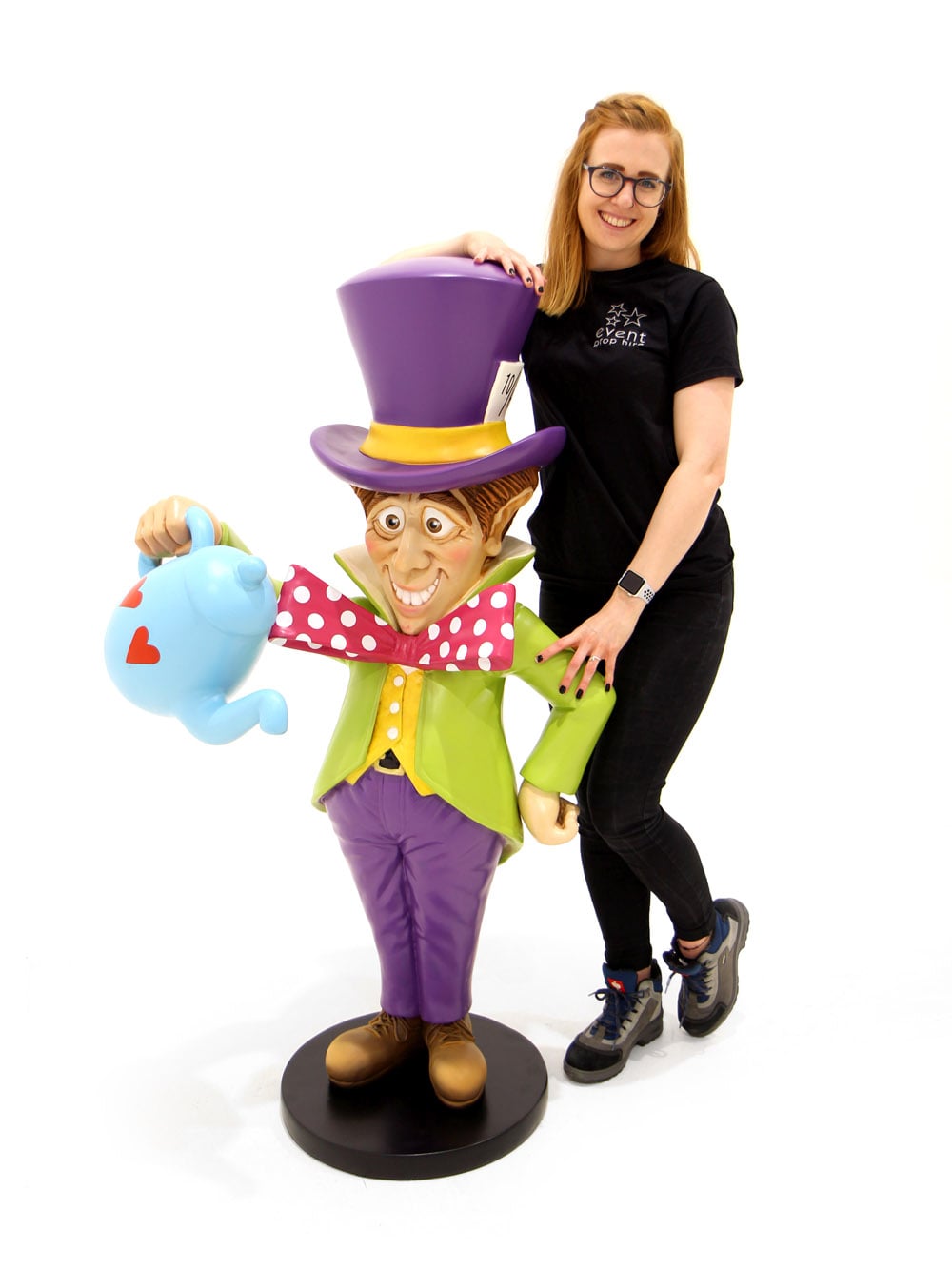 Mad Hatter Character available to hire. This famous character is available to hire and is a perfect addition to any Alice in Wonderland themed events. Pair with our Tweedle Dee & Tweedle Dum or Alice characters, This Way, That Way Sign and Giant Flowers to create the perfect Mad Hatter’s Tea Party-inspired montage. The Mad Hatter Character is free-standing and great as a fun photo opportunity at Alice in Wonderland themed events. The Mad Hatter is a key character in Alice in Wonderland, so don’t miss out! Book this for your next Alice in Wonderland themed event.