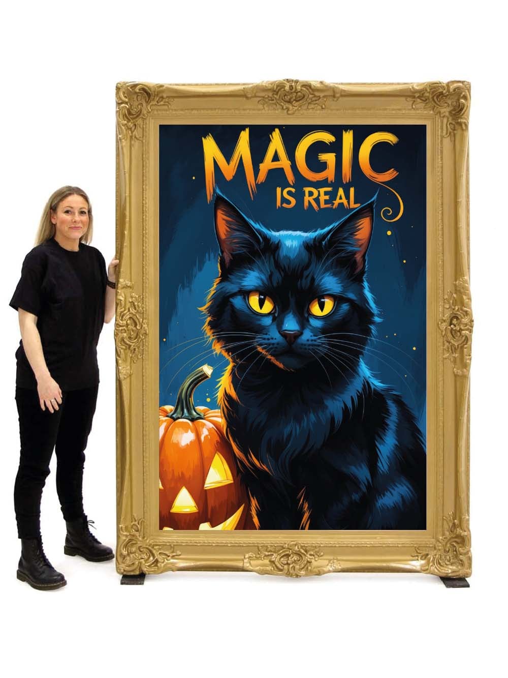 Magic is Real Halloween Graphic in Gold Frame. Great theming for Halloween Themed events. Check out the full range of Halloween theme prints in giant frames.
