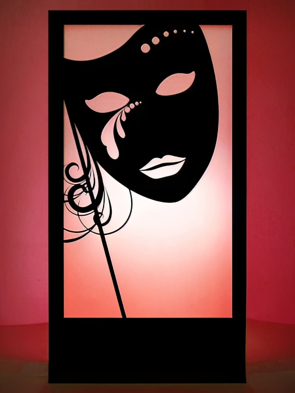 Mask Silhouette Panel for hire. With elegant and attractive images, our mask silhouette panels would look great at your next Venetian event or Masquerade Ball. Take a look at the full selection we have on offer below. Please note that the lighting colour may vary from that shown. ย All Parcan lights have a 1m lead and it is the responsibility of the client to provide extension leads if longer leads are required. Finally, ย the price ย quoted includes one supplied light. .
