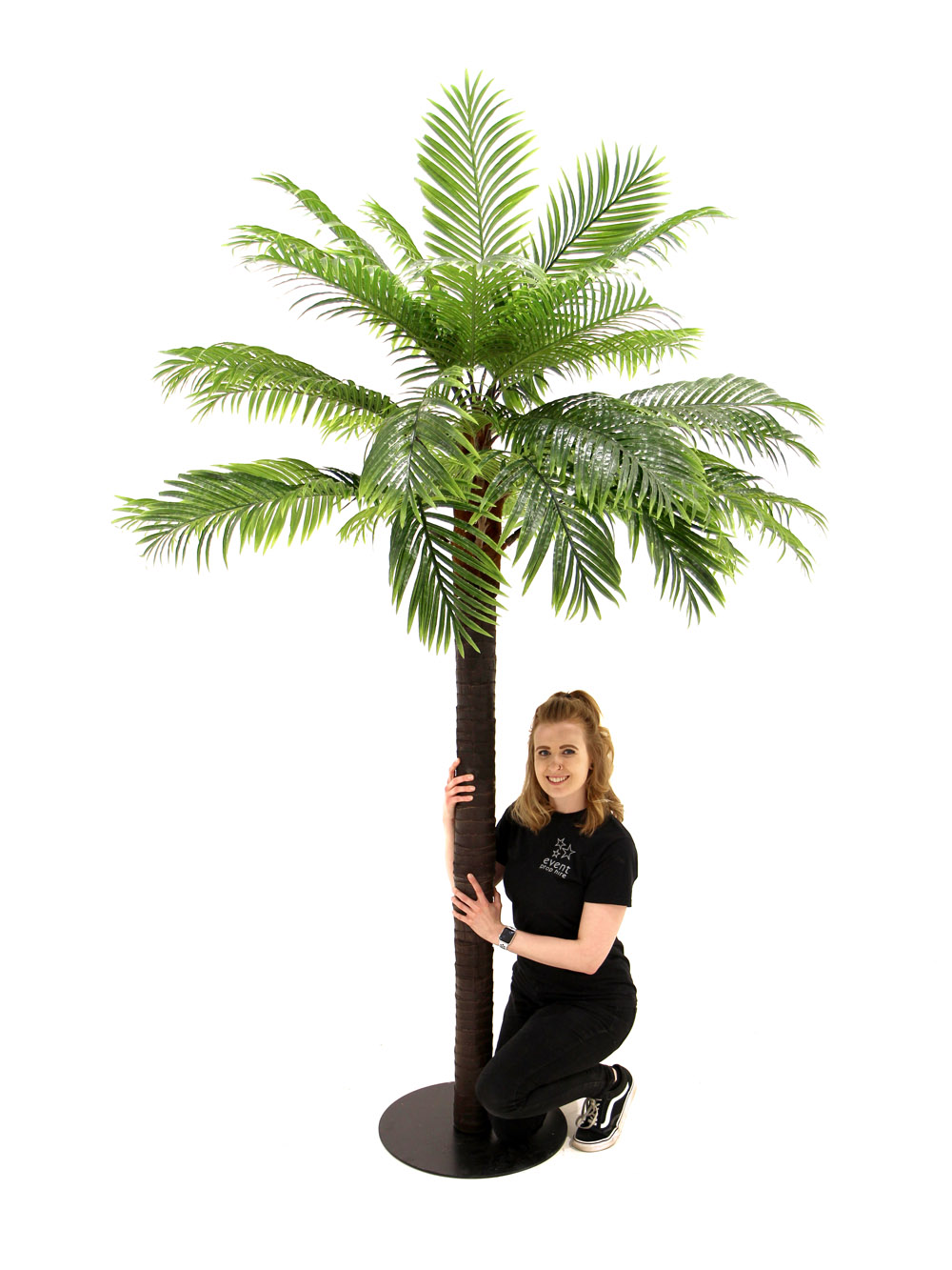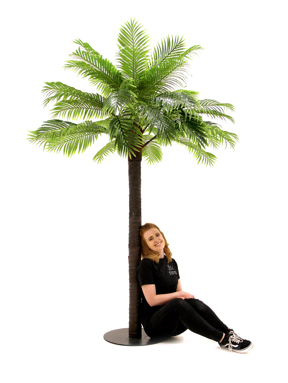 Medium Palm Tree – 2.6m. Creating the feeling of being on a summer holiday is always a popular option for any event. Our large range of Palm Trees can be used to create all sorts of different looks whether its a Caribbean beach setting or using them either side of an entranceway, these super versatile palm trees are a perfect choice. These fantastic in-house designed palm trees are easy to assemble, with quality artificial palm fronds. This palm tree is available at various heights and as a double or triple cluster too!