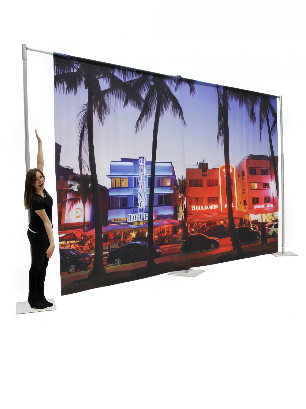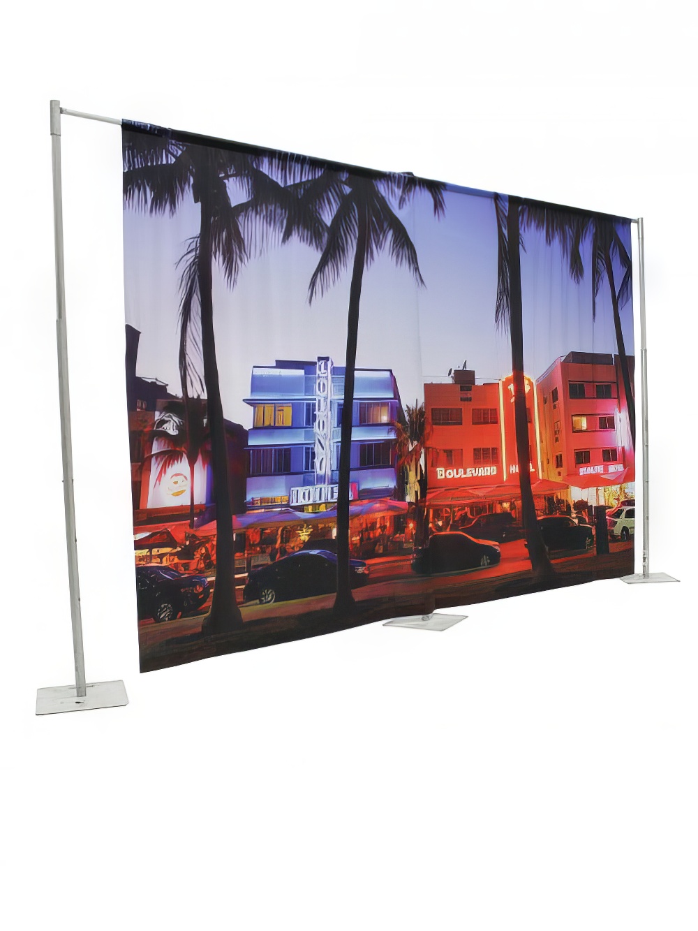 Miami Backdrop to hire! This vivid backdrop will transport your guests to the Miami beachfront and will provide a stunning setting for your event or party. Why not position some of our other related props in front of the backdrop? Our Palm Trees or surfboards could really help to create a fully ย themed Miami beach scene.