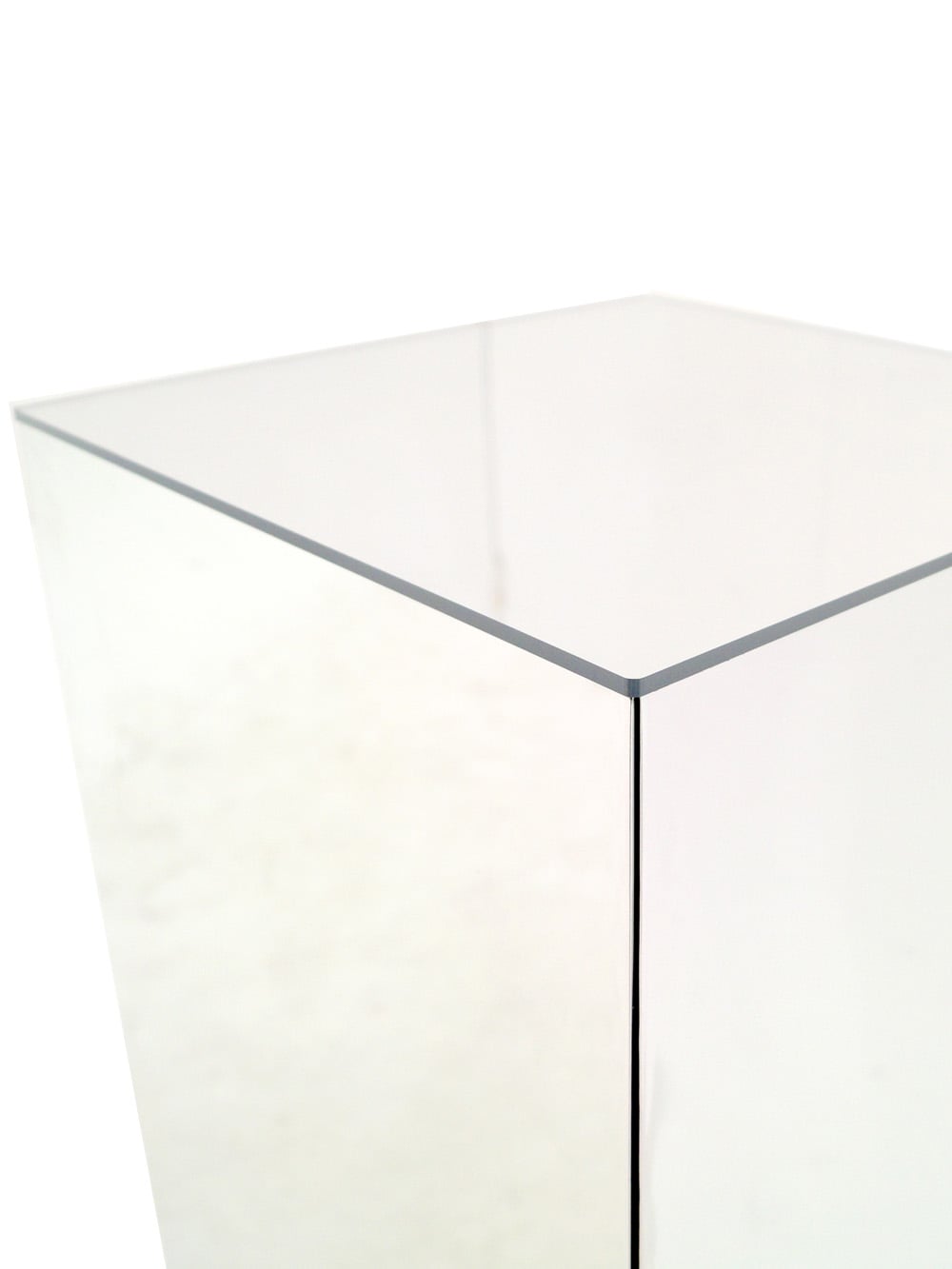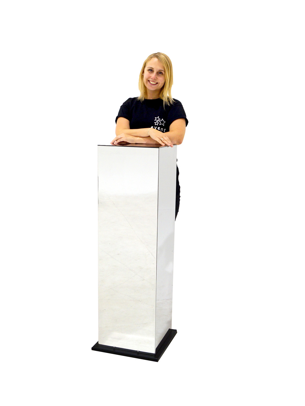 Mirrored Plinth to hire. This Mirrored Plinth has a lovely mirrored finish, giving it a crisp reflective surface that would look fabulous at your event or party.