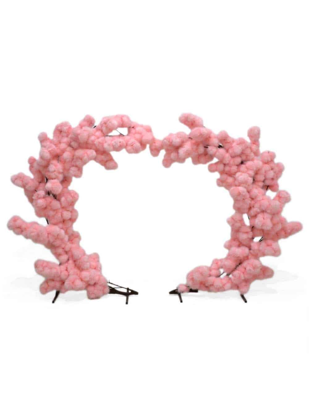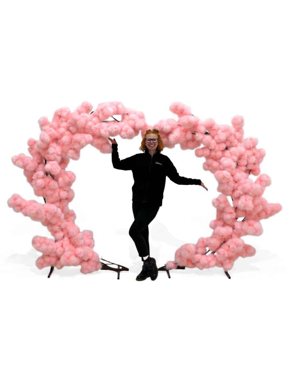 Moon Gate – Candy Floss for hire. Add a sweet touch of whimsy to your next event with the Candy Floss Moon Gate. This eye-catching rental transforms any space into a fantastical candy-filled wonderland with its soft pink pom poms and chocolate factory theme. Give your attendees a taste of pure imagination. This playful entranceway or aisle topper delights people of all ages with its whimsical charm and sweet, candy-inspired style. Your next event will be filled with delight as guests pose and dance through this stunning focal point. Make your party unforgettable with a theme that ย’s as sweet as candy. Make your party unforgettable with a theme that ย’s as sweet as candy.