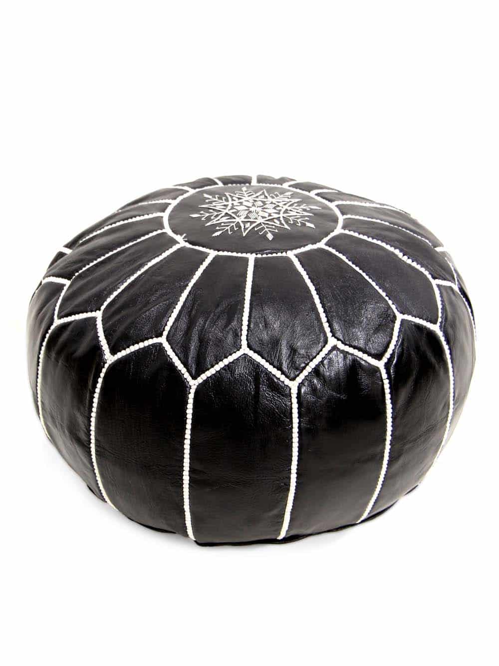 Moroccan Leather Pouffe – Black