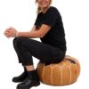 Moroccan Leather Pouffe – Mixed Brown