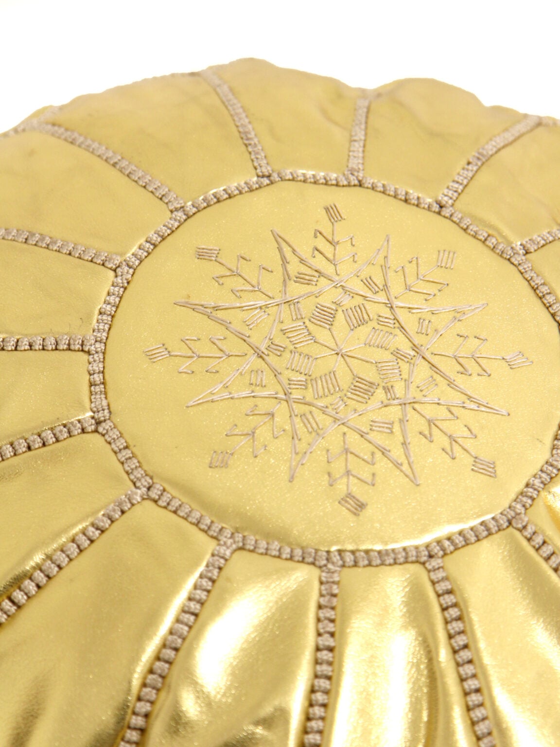 Gold Moroccan Leather Pouffe for hire! Take a look at our assorted collection of Moroccan style pouffes.