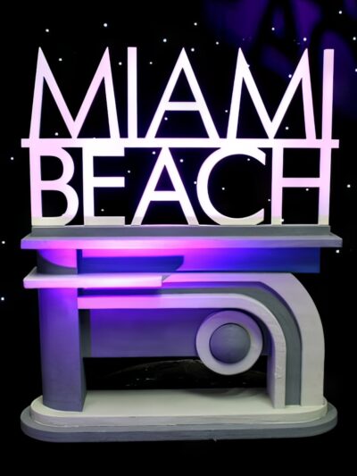 Neon Effect Palm Tree to hire. Whether it is for a Caribbean, Carnival or Miami themed event or party, our neon effect palm trees will look really great. ย Position them at an entrance, on stage or by the bar – whatever you decide they will really help to set the scene and provide a lovely lighting effect. ย This prop is mains operated. We also have a right facing neon effect palm tree in ย blue ย and the same options in red! Check them out here.