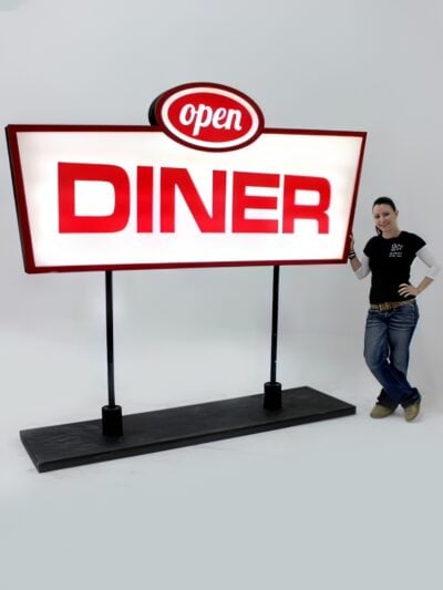 Neon Effect Sign for hire. Designed to look like a giant neon sign, this prop gives you all the effect of being a neon glass sign with none of the risk. The sign is powered by LED’s. The item takes two people a few minutes to set up and is powered from a domestic 3 pin plug.