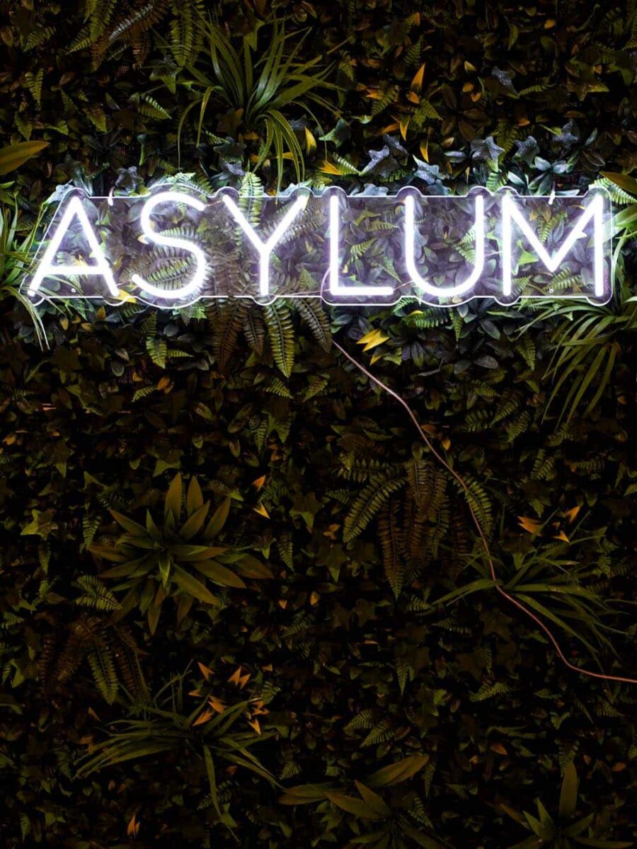 Neon LED Sign ‘ASYLUM’ For Hire.