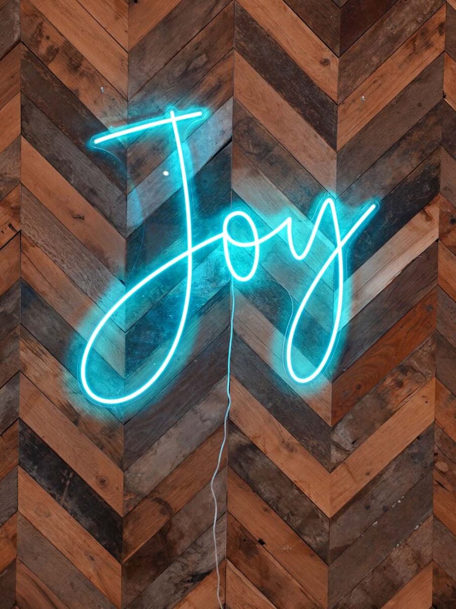 Joy – Neon LED Sign to hire. Our Neon Signs make the perfect addition to your event. Whether you mount them on some of our Living Wall panels, or onto a wooden backdrop – they provide a fun bit of lighting and styling.