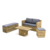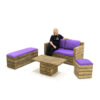 Pallet furniture is on trend and rightly so, as these products are so versatile! This Pallet Furniture fits wonderfully into a number of themes from English Country Garden to Charlie and the Chocolate Factory and much more! Not only are these visually pleasing, they are practical and comfy giving your guests the perfect place to pop their feet up. We offer a full Pallet Furniture Collection including Single Cube Seat, Bench, Sofa and Coffee Table.