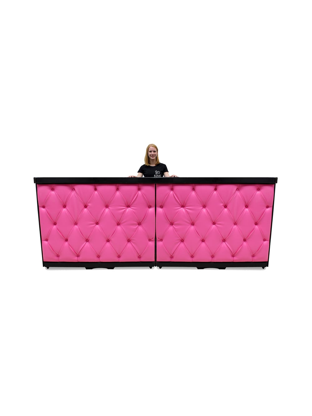 Pink Chesterfield Bar (3m) for hire. This hot pink Chesterfield bar is upholstered with a pink ย leather effect vinyl ย and would be a great item for ย any Alice in Wonderland themed event or party.