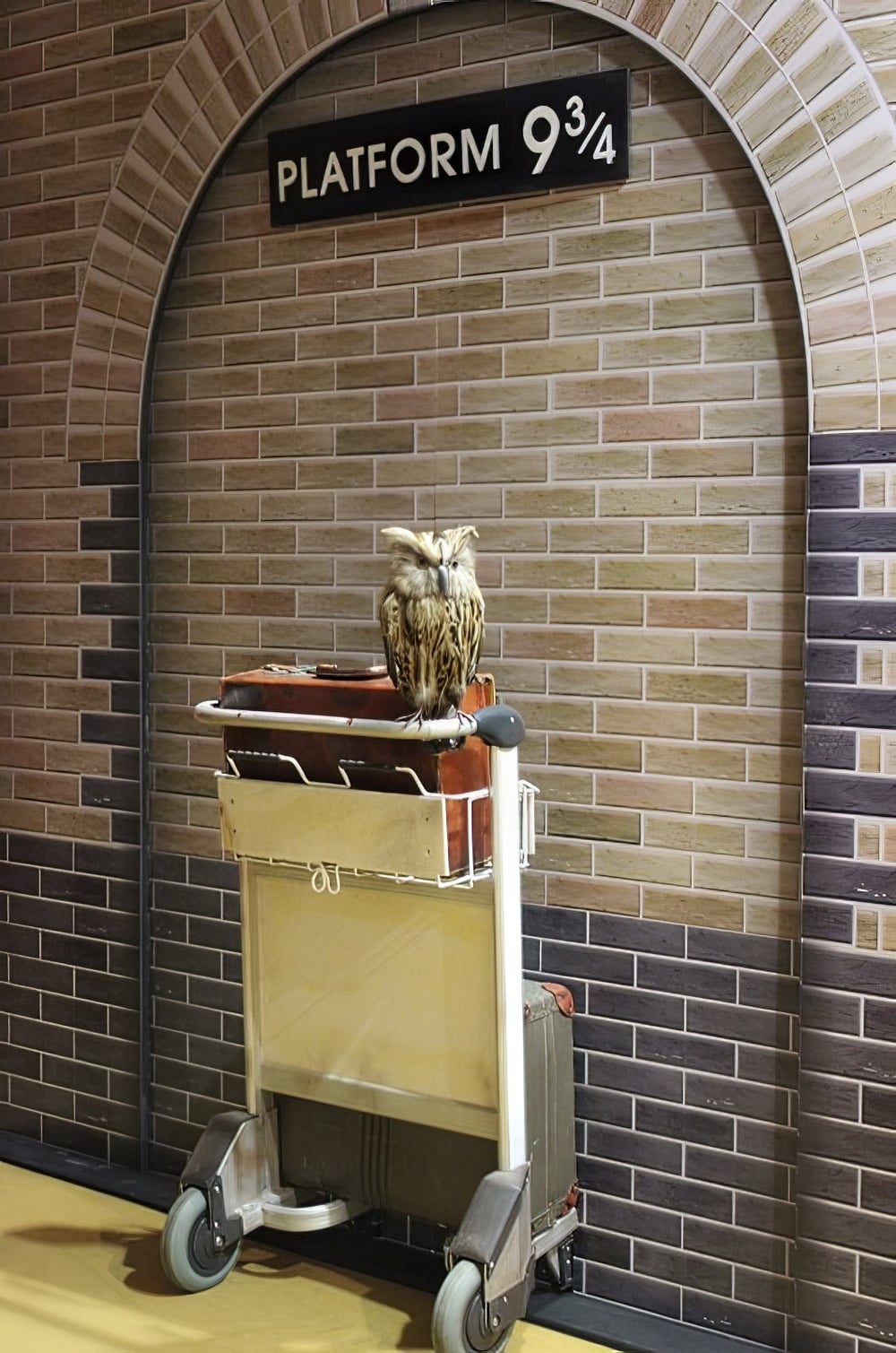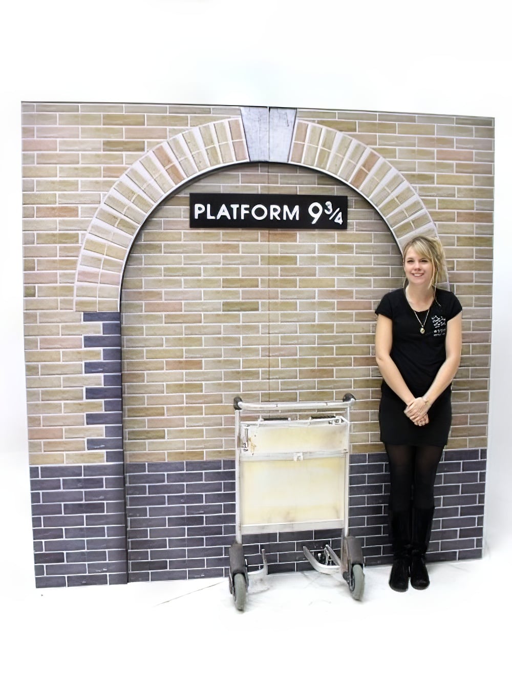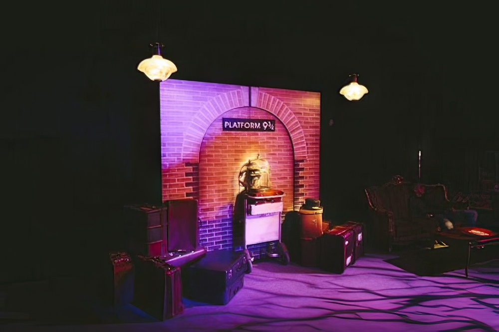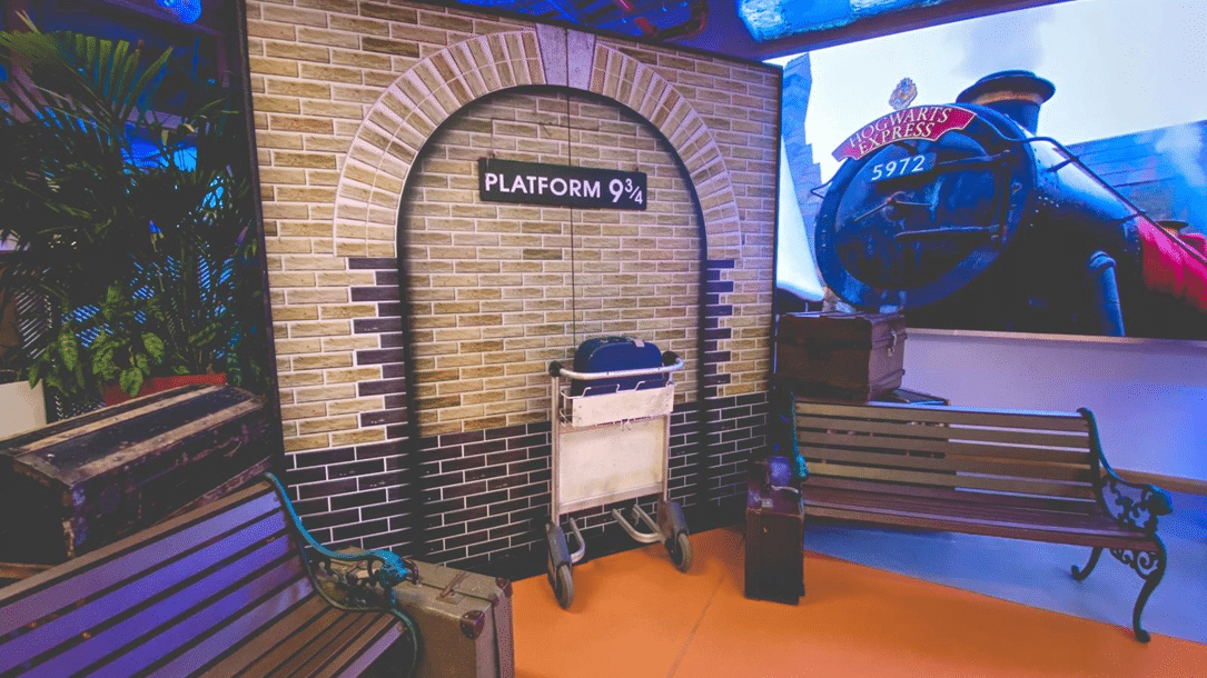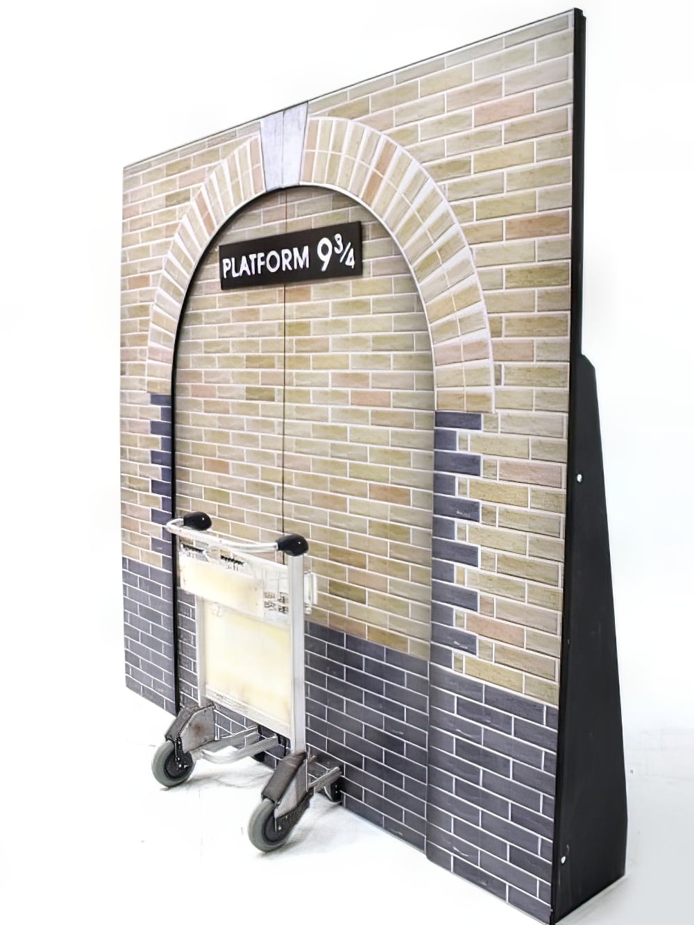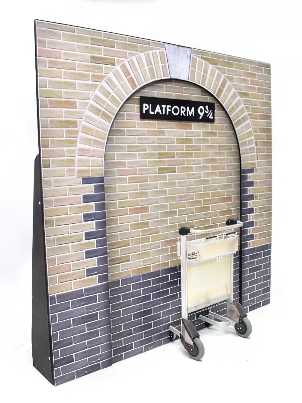 Platform 9 3/4 Set to hire. Recreate the journey to Hogwarts with our magical platform 9 3/4 set! ย  Pretend to push the luggage trolley through the brick wall and into the magical Wizarding World of Harry Potter!