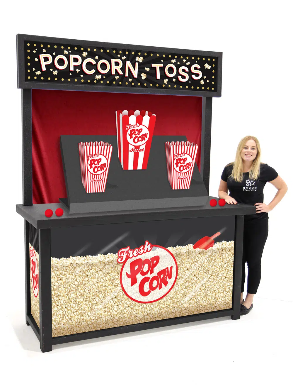 Roll up roll up! Test your aim with our traditional Popcorn Toss Game by trying to throw the supplied balls into the Popcorn buckets. ย A perfect addition to any red carpet Hollywood or Awards-themed event.
