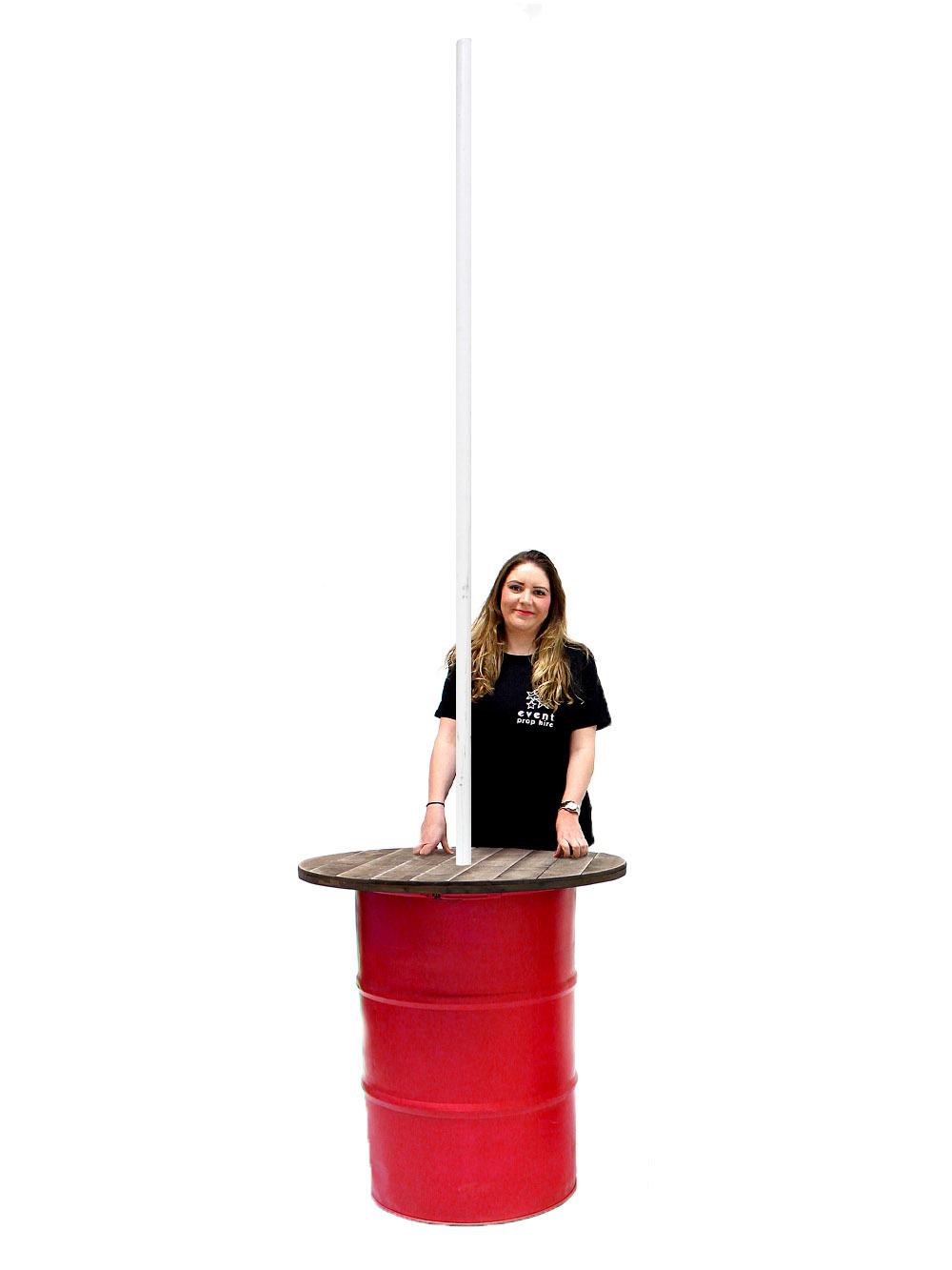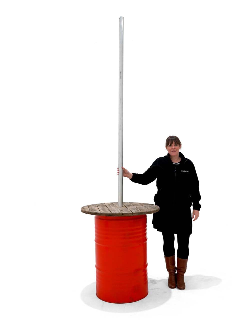 Poseur Table Bunting Unit – Red Steel Drum with Pole (3m) to hire.
