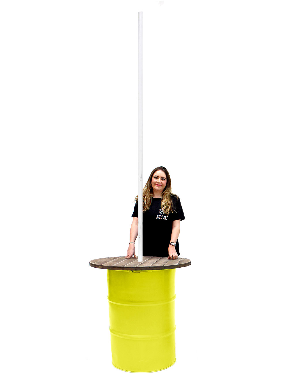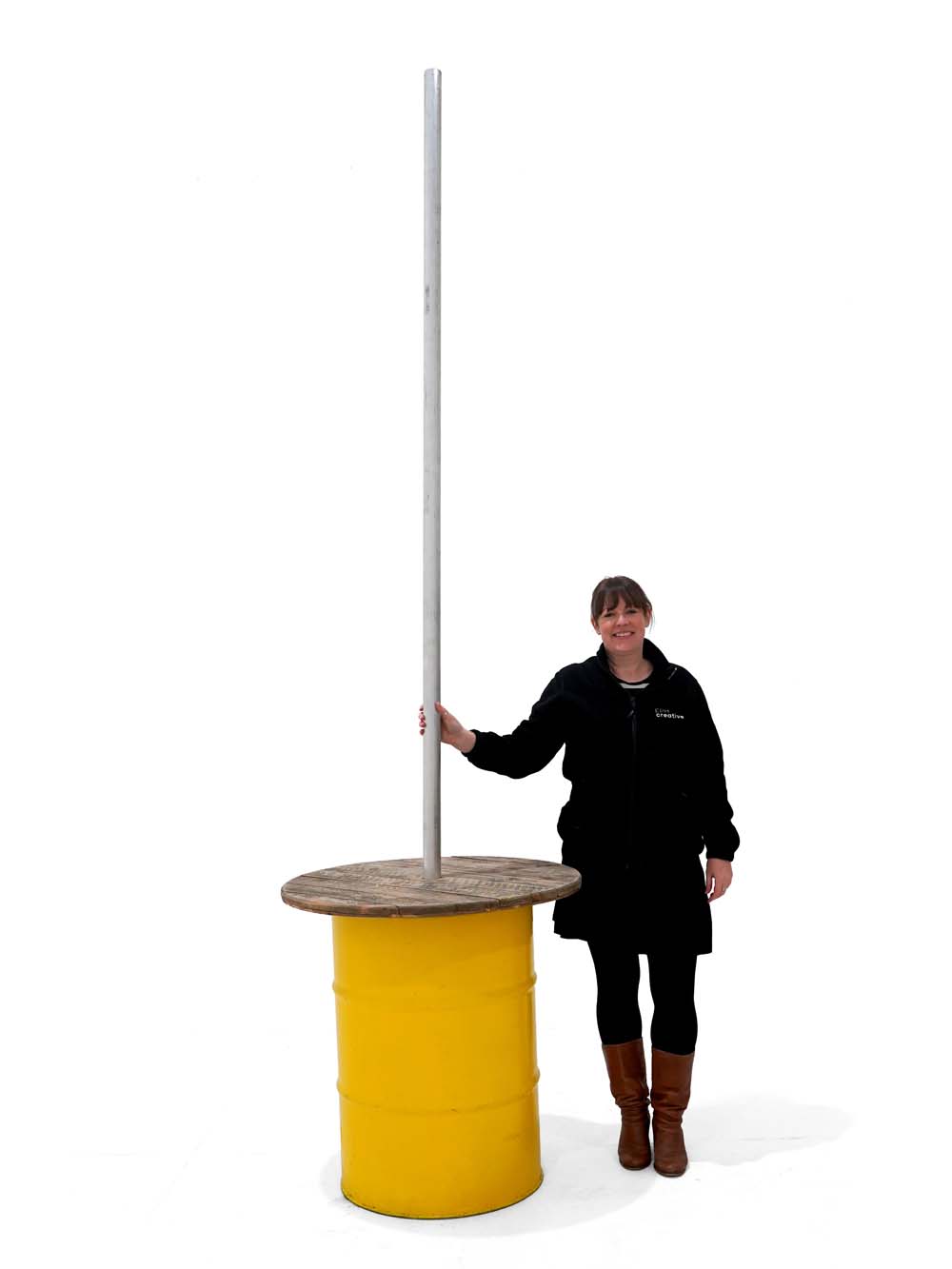 Poseur Table Bunting Unit – Yellow Steel Drum with Pole (3m) to hire.