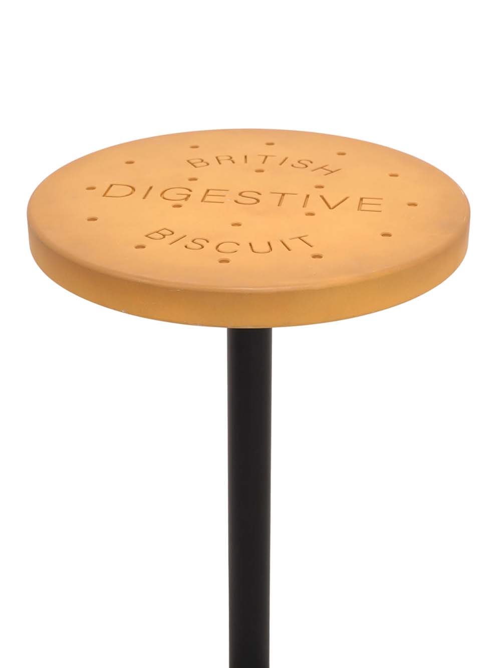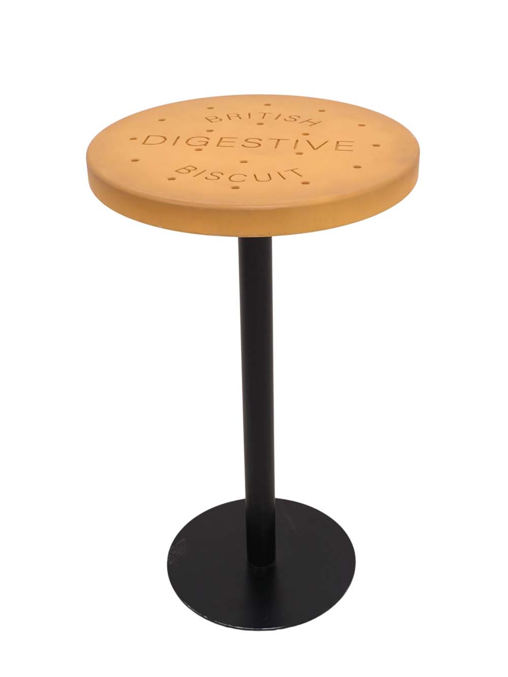 Poseur Table – Digestive Biscuit & Black Base for hire. Featuring our unique digestive biscuit tabletop, this poseur table is sure to hit the (sweet) spot at your event!