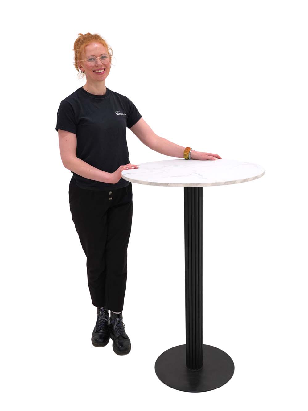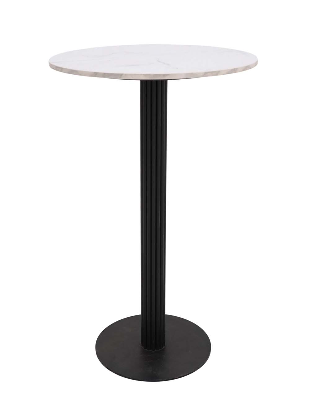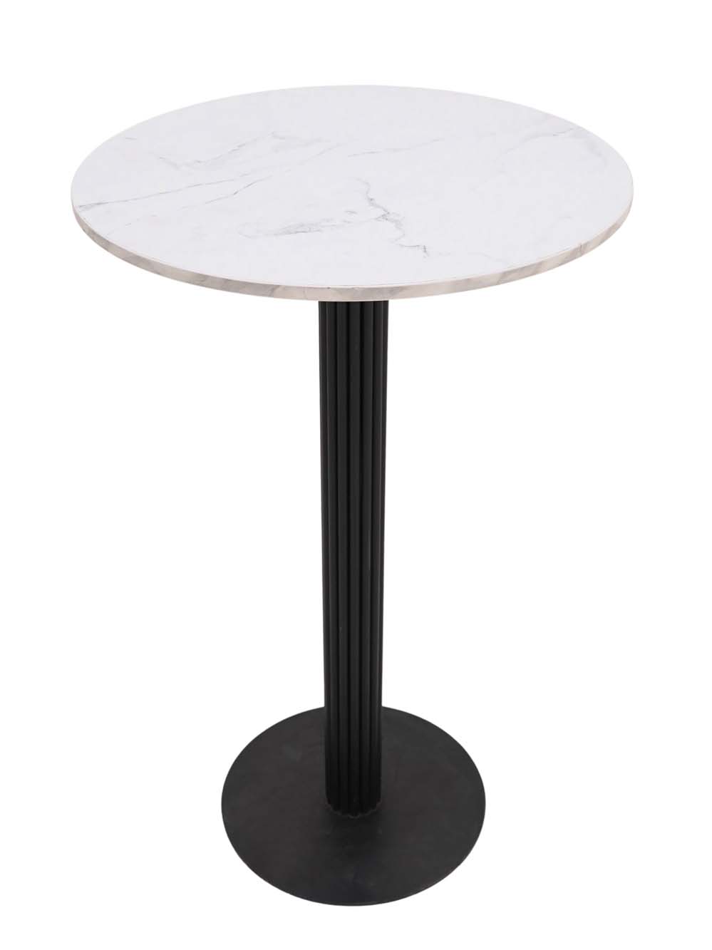 Poseur Table – White Marble Effect Top & Black Fluted Base