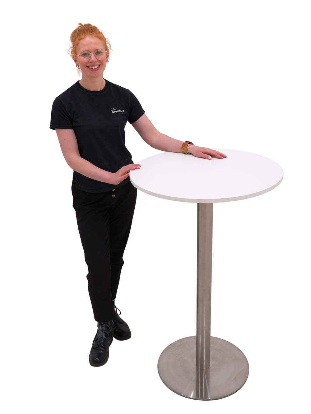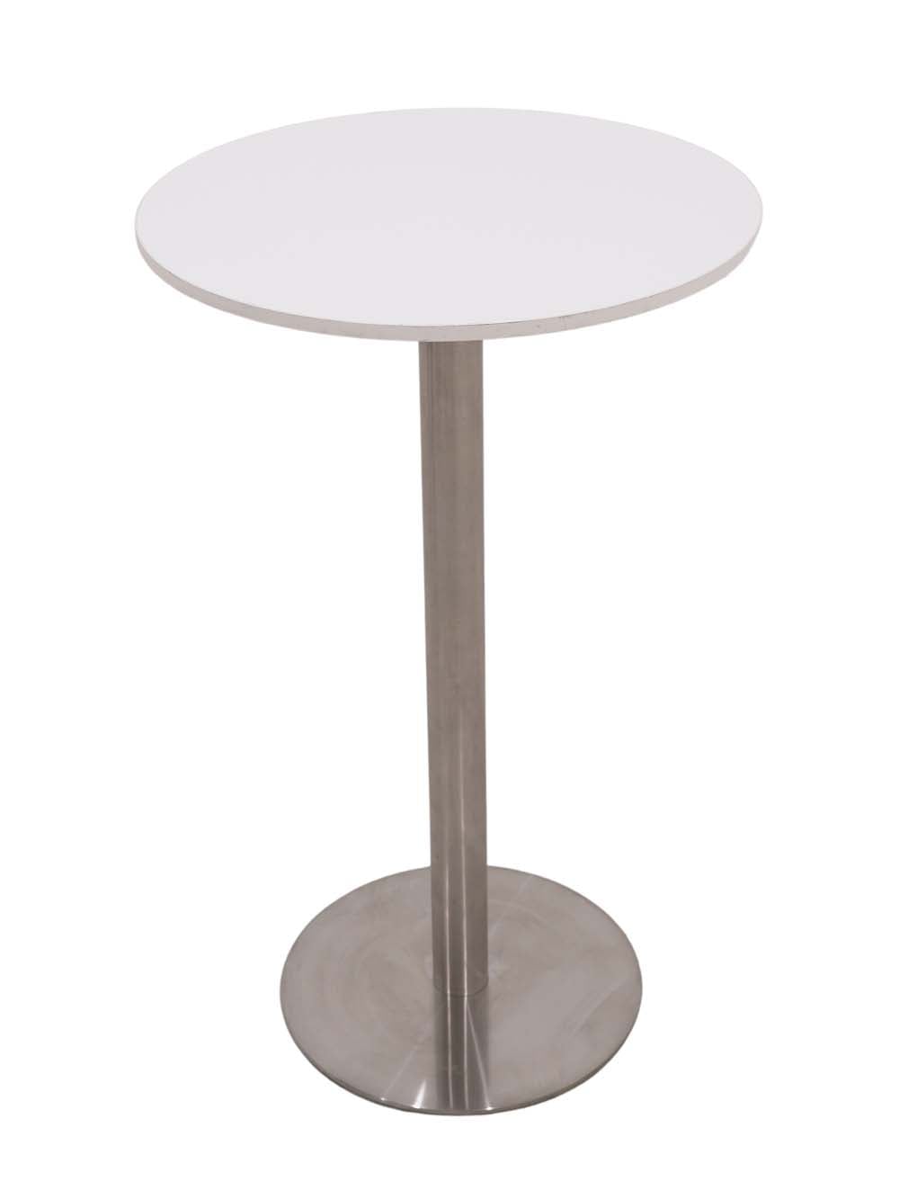 Poseur Table – White Top & Brushed Steel Base