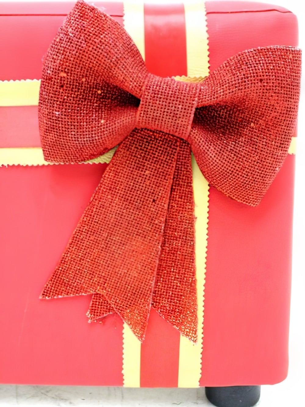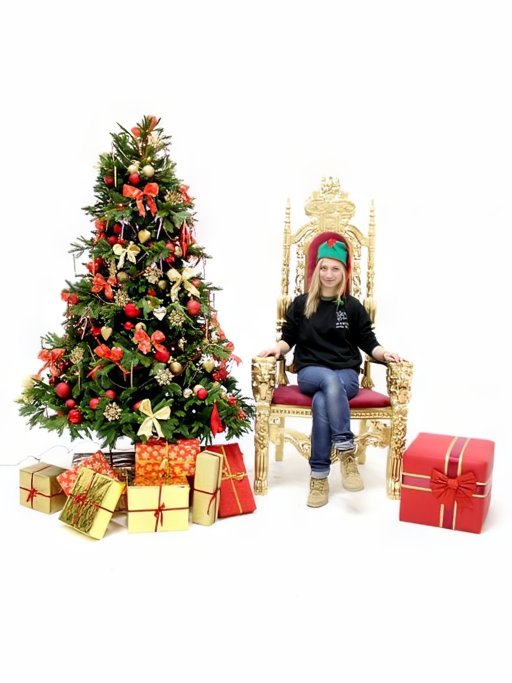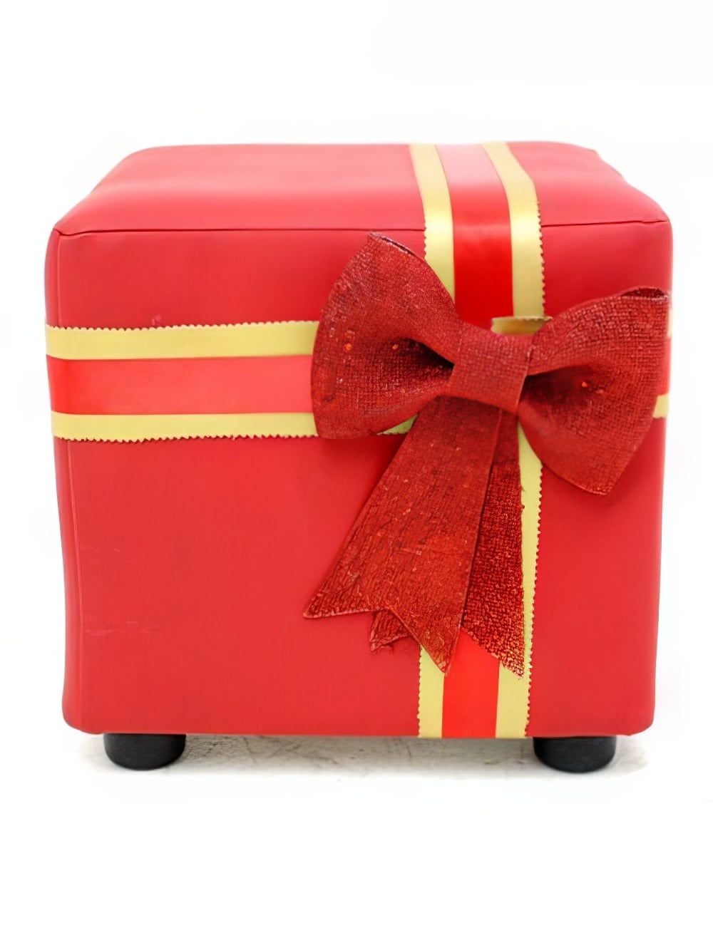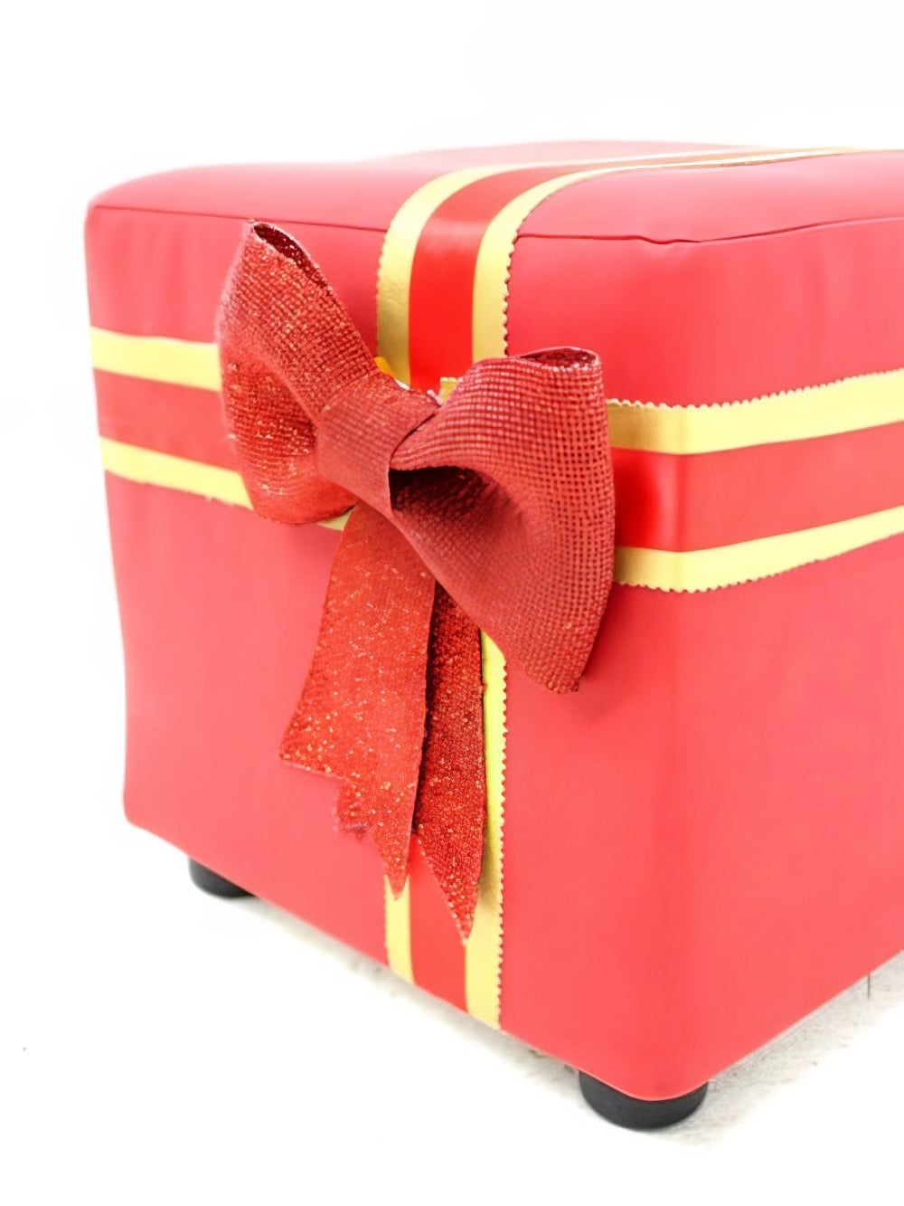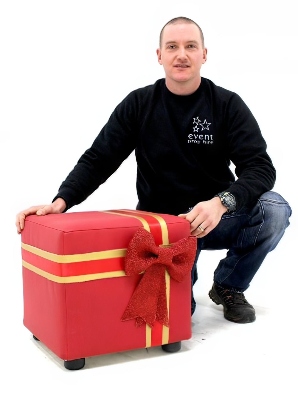 Present Cube Seat (Red) for hire. Cute little present cube, perfect for a Christmas or Birthday themed seat, or as a child’s seat in a Santa’s Grotto.