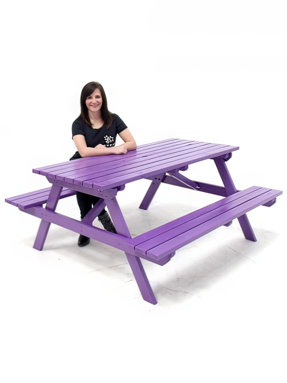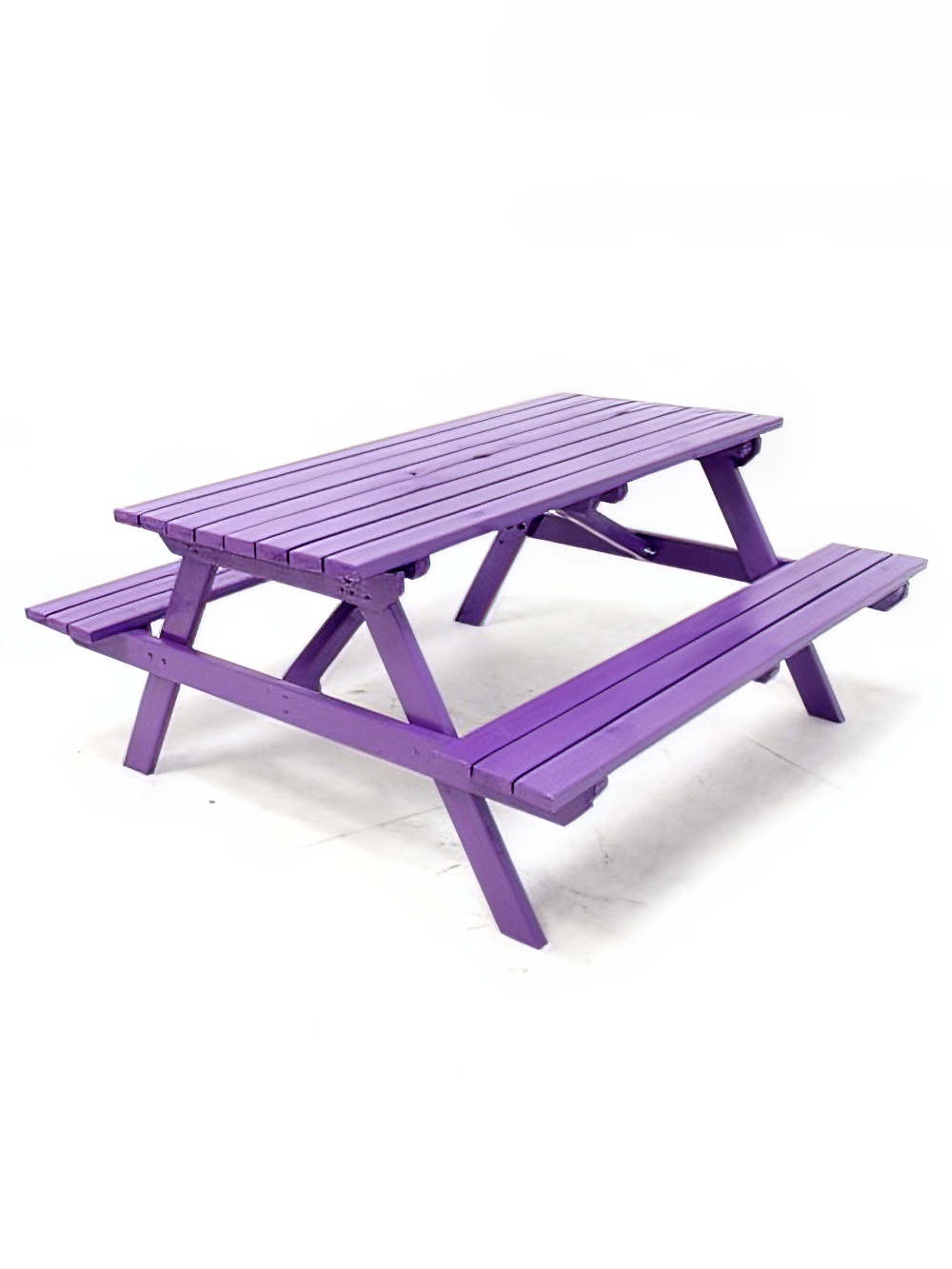 Purple Picnic Bench to hire. This park-style picnic bench would be a great way to bring the outdoors indoors at your event This prop offers both alternative seating and a place for your guests to enjoy some picnic-themed food Mix the colours for a rainbow look! Please note that these picnic tables are delivered in flat pack form for self-assembly.