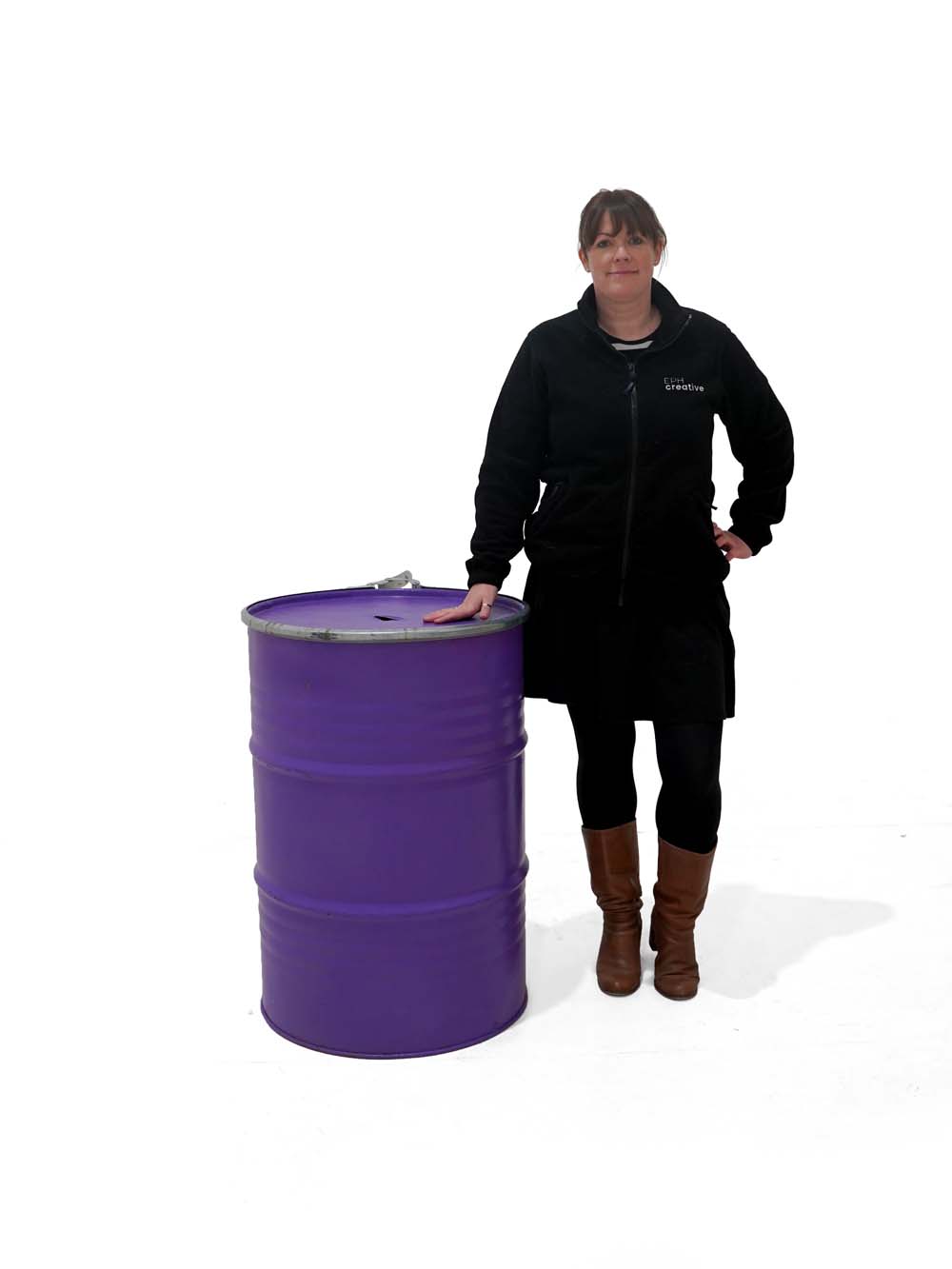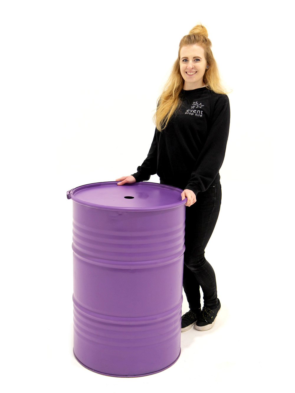 Purple Steel Drum to hire. This steel drum is painted in a lovely strong purple colour and is perfect for many themes, from a Caribbean themed event or party to a circus or festival themed event.