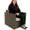 Rattan Armchair for hire. Take a look at our stylish weather resistant Rattan effect armchair for hire. ย  This contemporary armchair will provide a very comfortable and attractive seating option for your event or party and will fit in with a whole range of themes.