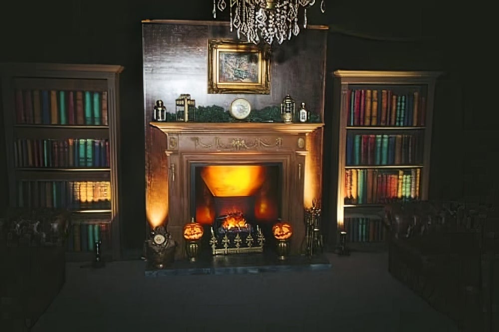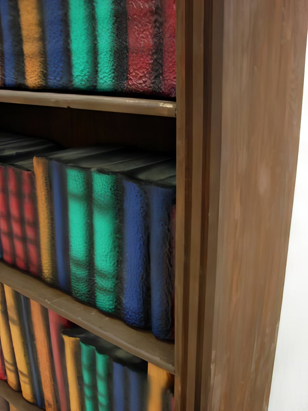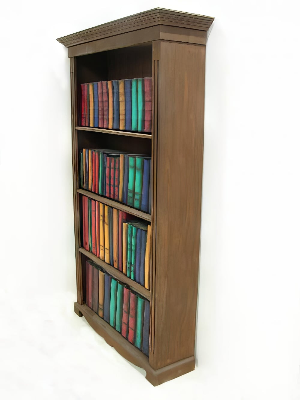 Replica Bookcase to hire. This bookcase, containing imitation antique books, would be the perfect background dressing to any scene, such as a study that requires an authentic looking set from a distance; such as on a theatre stage.