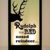 Rudolph The Red Nosed Reindeer Silhouette Panel to hire. Depicting the famous Red Nosed Reindeer Rudolph, this freestanding lit silhouette panel will light up any Christmas party themed event. Actual lighting colour may vary from that depicted.