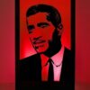 Lit silhouette panel depicting legendary crooner and ratpack affiliate Dean Martin. Actual lighting colour supplied may vary from that depicted. All Parcan lights have a 1m lead and it is the responsibility of the client to provide extension leads if longer leads are required. Price quoted includes one supplied light. We offer a customised version of this product here.