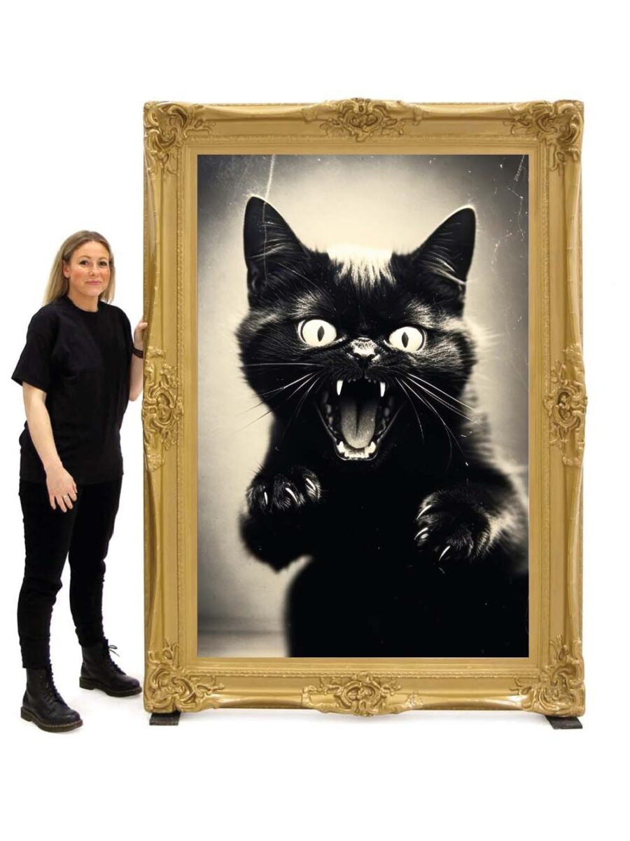 Scary Black Cat Halloween Print in Gold Frame. Great theming for Halloween Themed events. Check out the full range of Halloween theme prints in giant frames.
