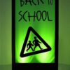 Lit silhoutte panel back to school text and child crossing road graphic. Actual lighting colour may vary from that shown. All Parcan lights have a 1m lead and it is the responsibility of the client to provide extension leads if longer leads are required. Price quoted includes one supplied light.We offer a customised version of this product here.