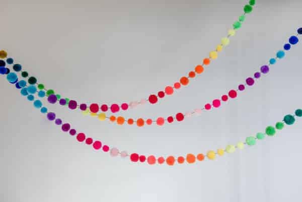 Set of 6 – Pom Pom Garland – Rainbow for hire.