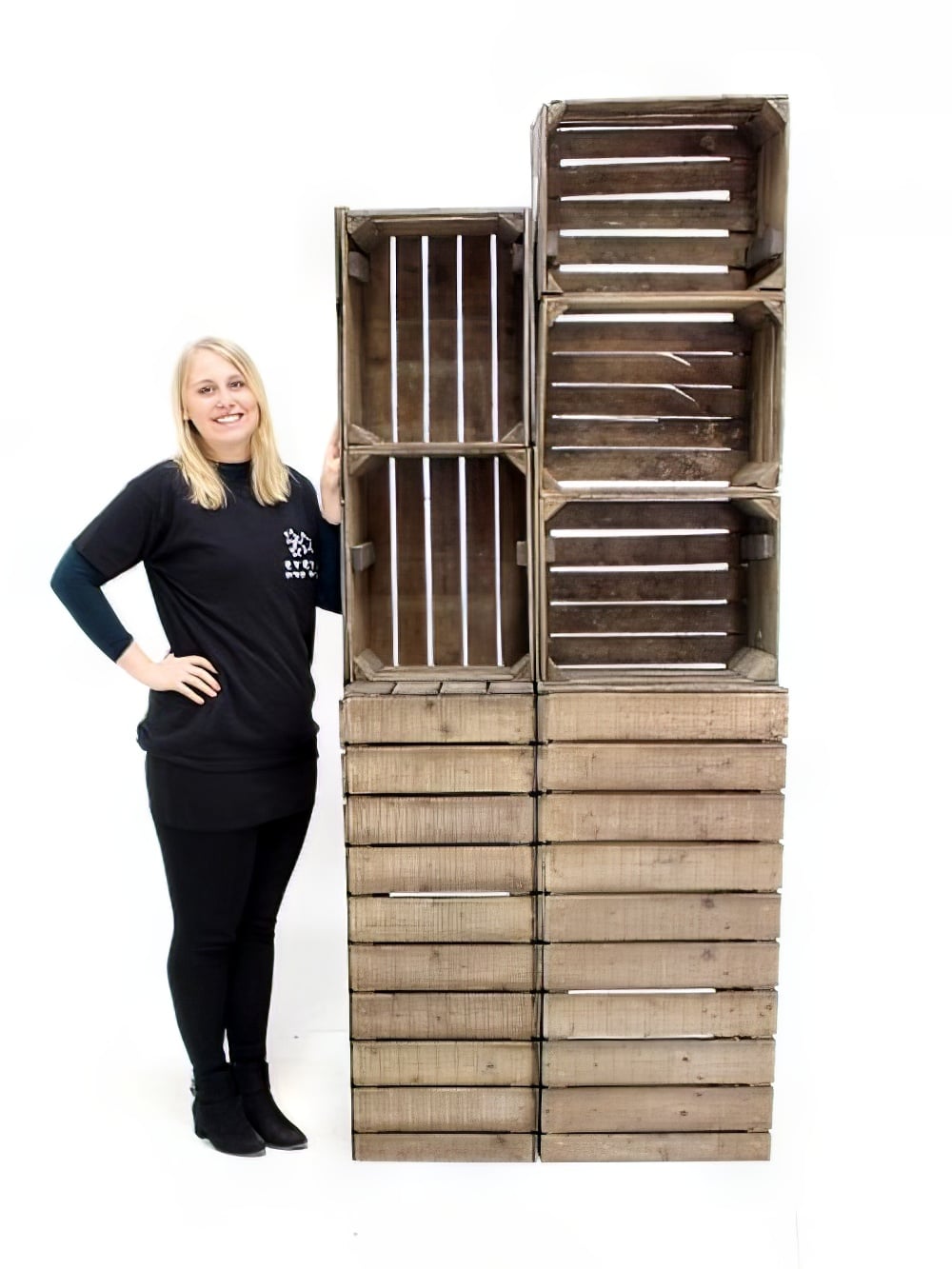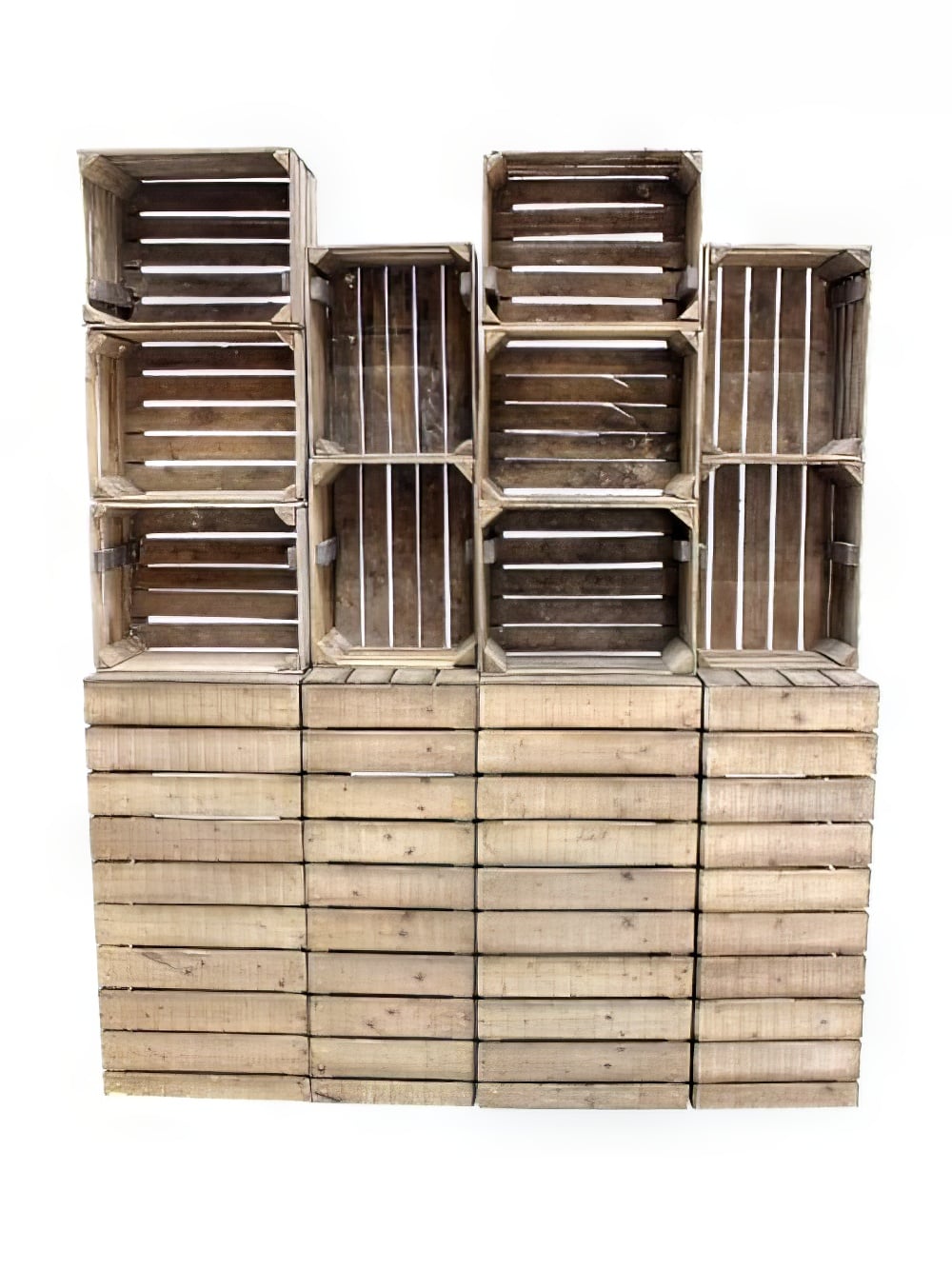 Single Crate Back Bar to hire. This is a back bar with a difference, made from rustic, aged crates that will create a fantastic look across many different themes, from Industrial to Pirate, or from Market to Caribbean.