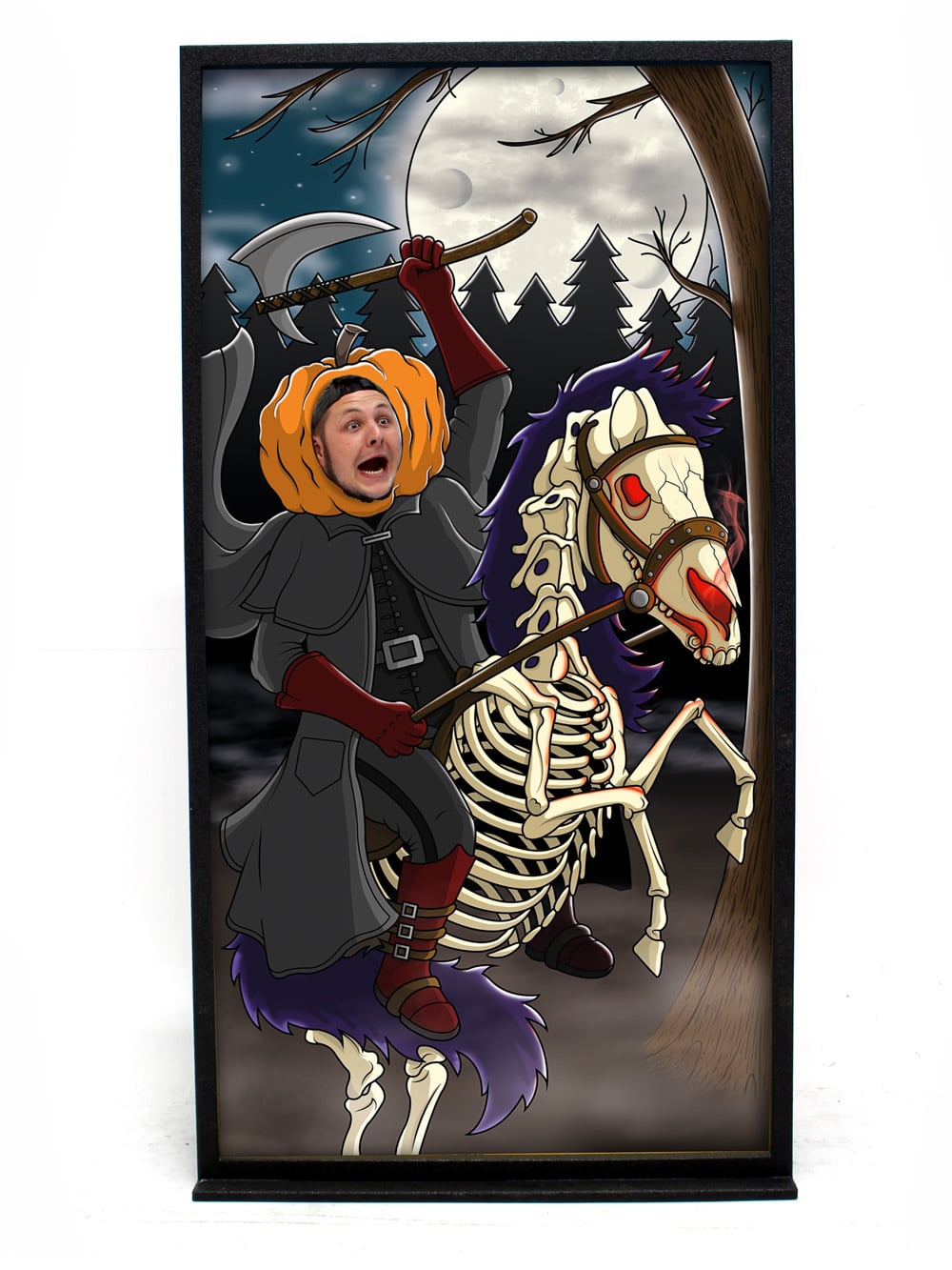 Skeleton Horse Peep Thru Board to hire. This peep thru is perfect for adding a little bit of fun to any Halloween or Pirate themed party or event.